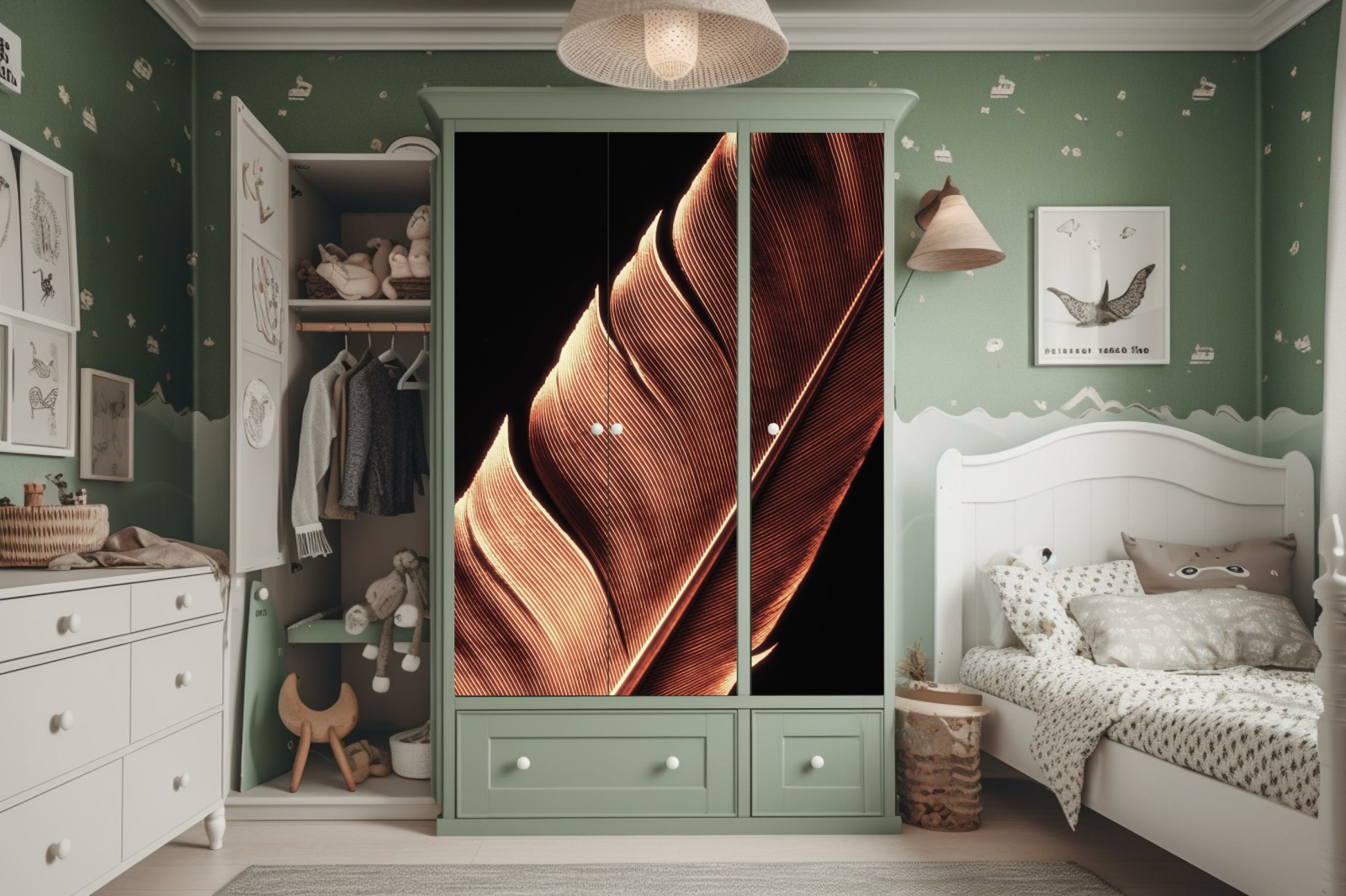 Schrankaufkleber Goldene feder makro vor schwarzem hintergrund