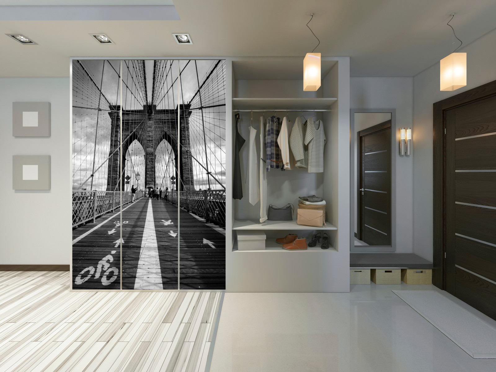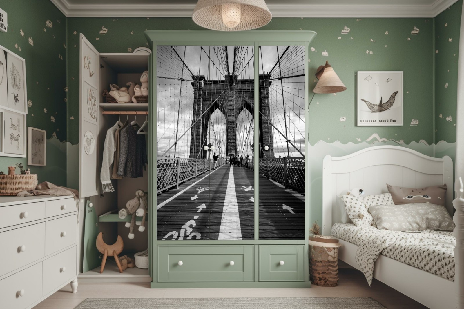 Schrankaufkleber Brooklyn Bridge perspektive in monochrom