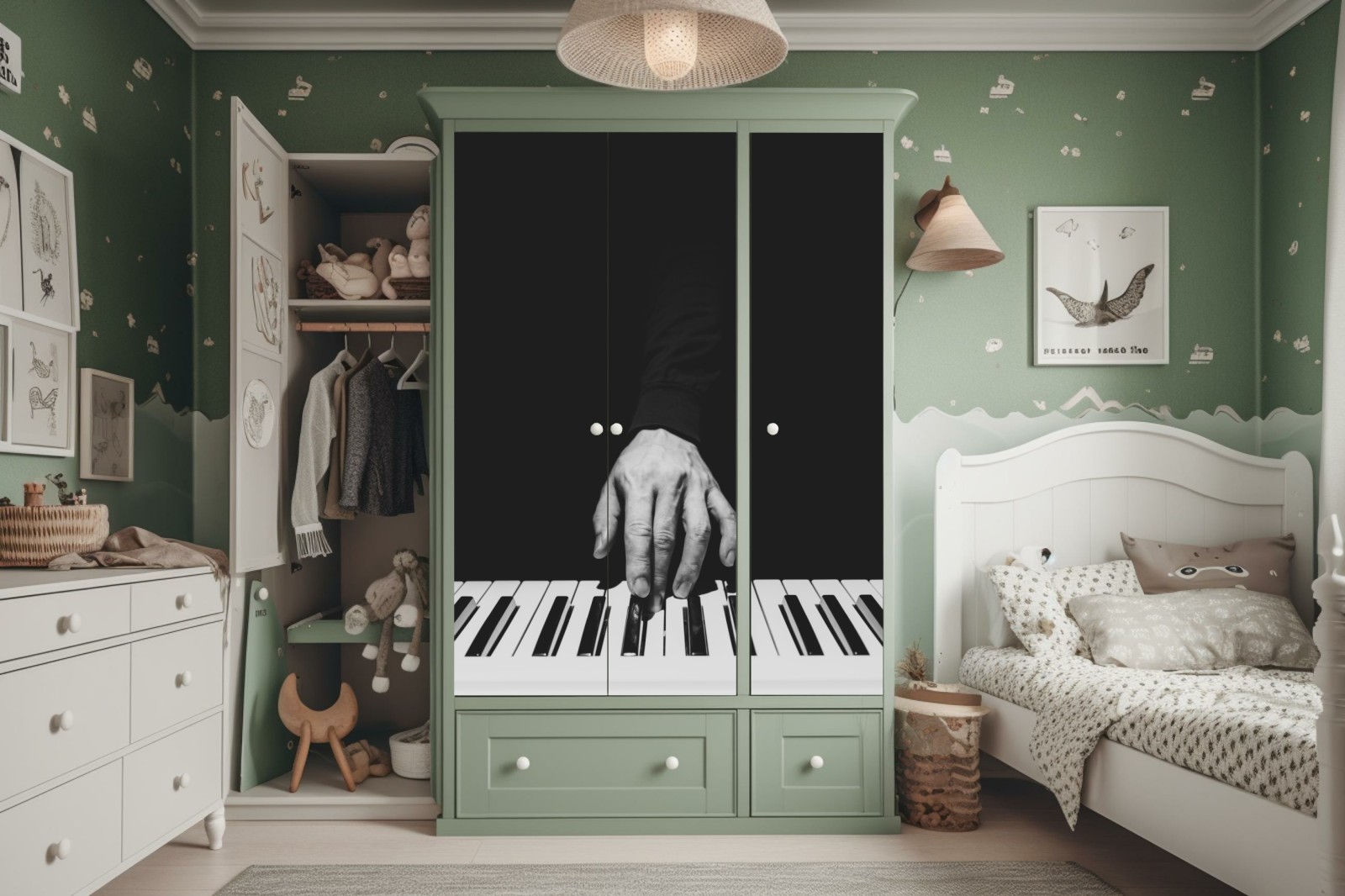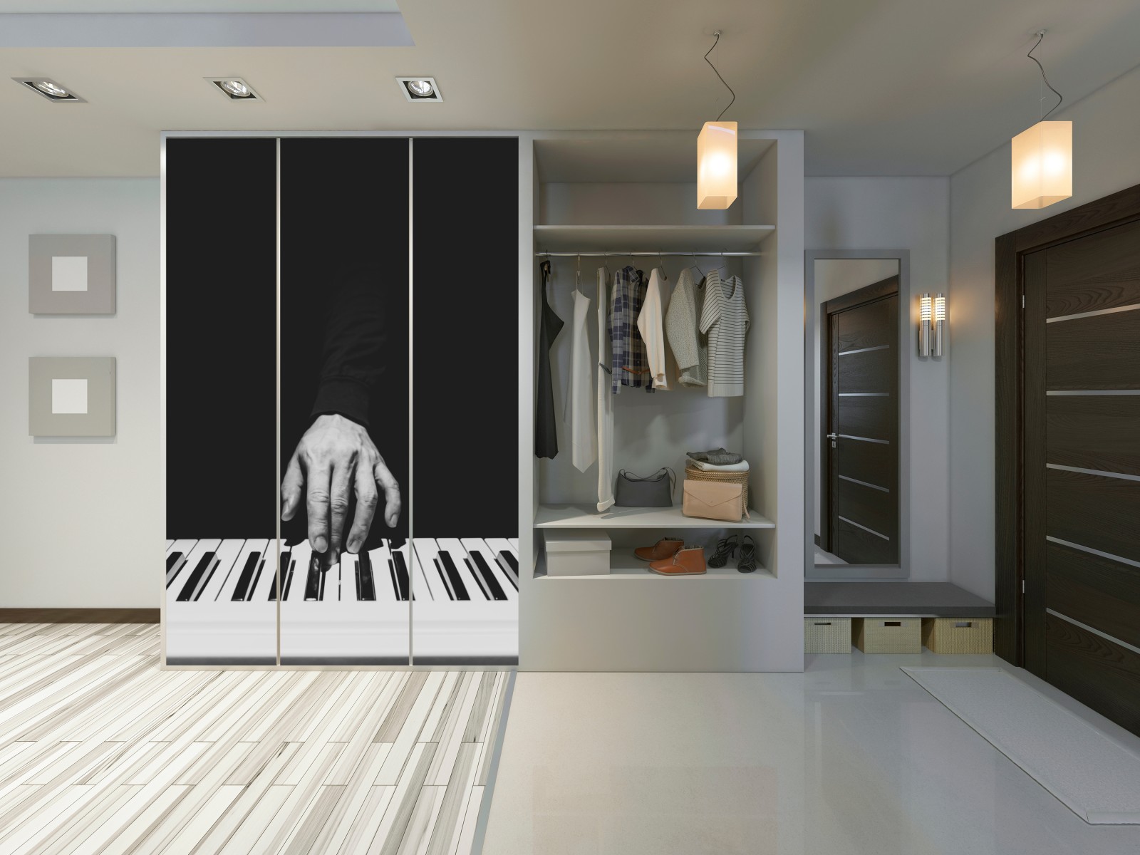 Schrankaufkleber Monochromes nahaufnahme einer hand am klavier