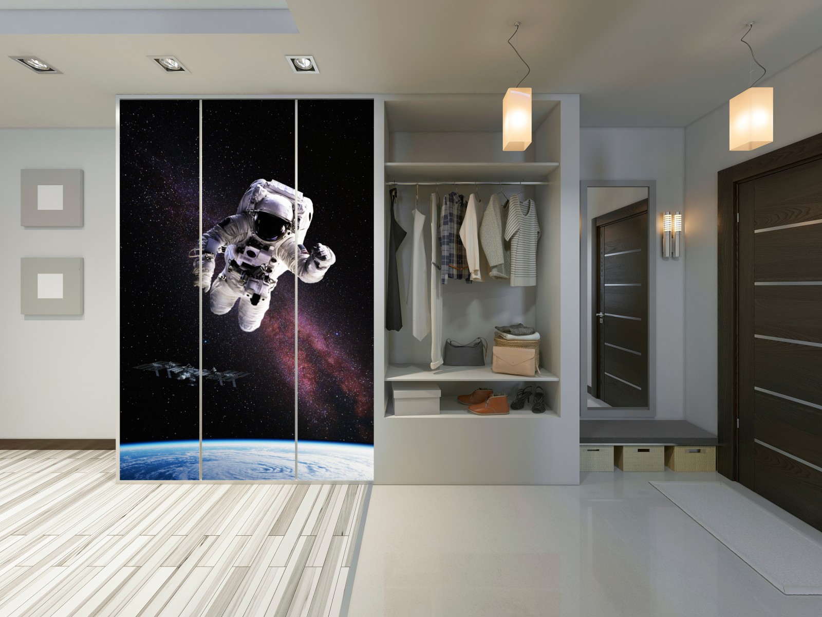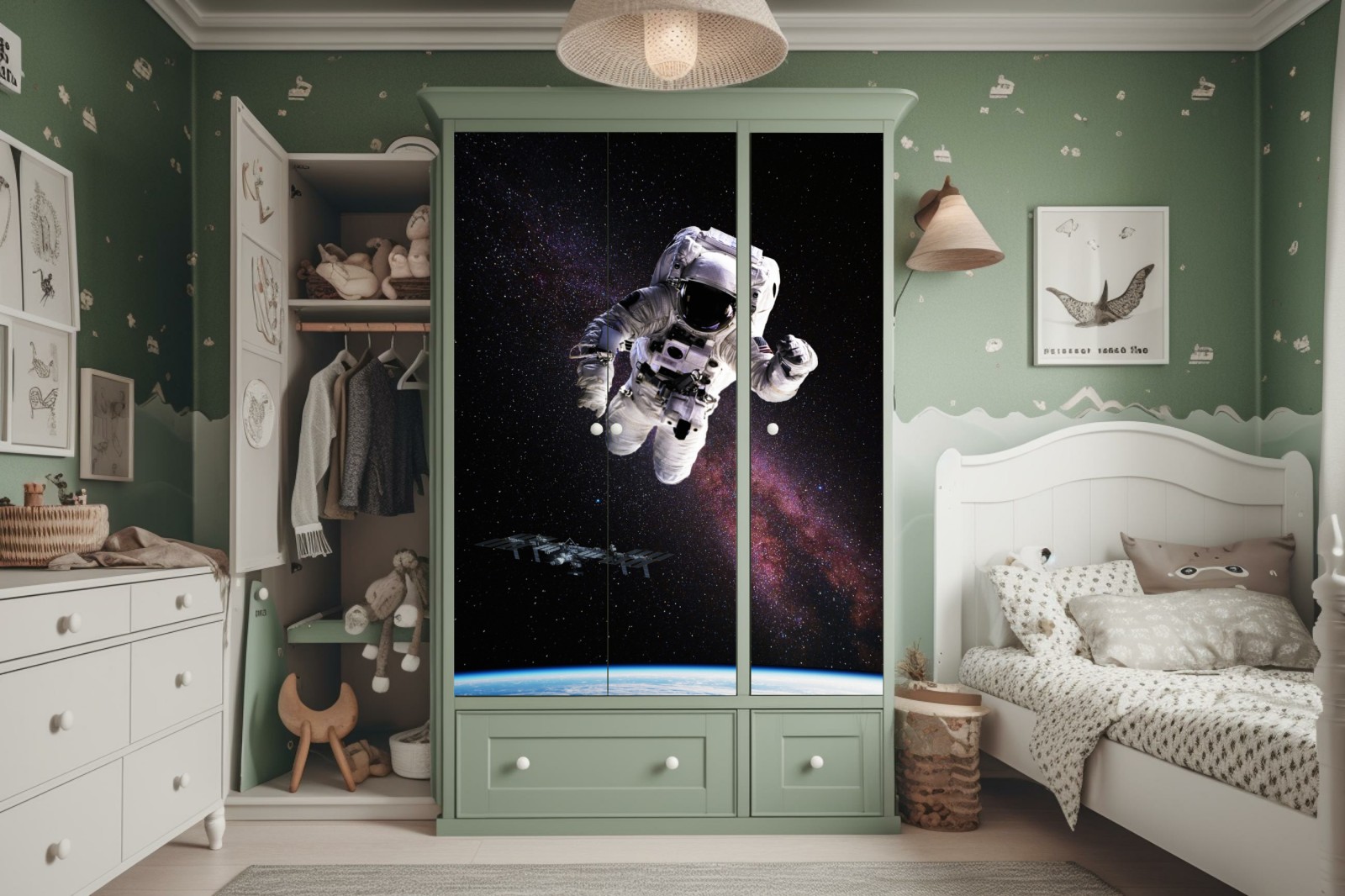 Schrankaufkleber Astronaut über der Erde und galaxie
