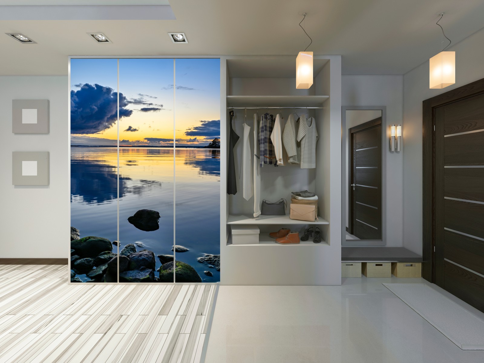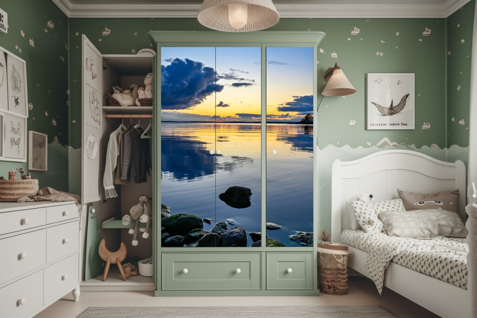 Schrankaufkleber Ruhige küstenlandschaft bei sonnenuntergang