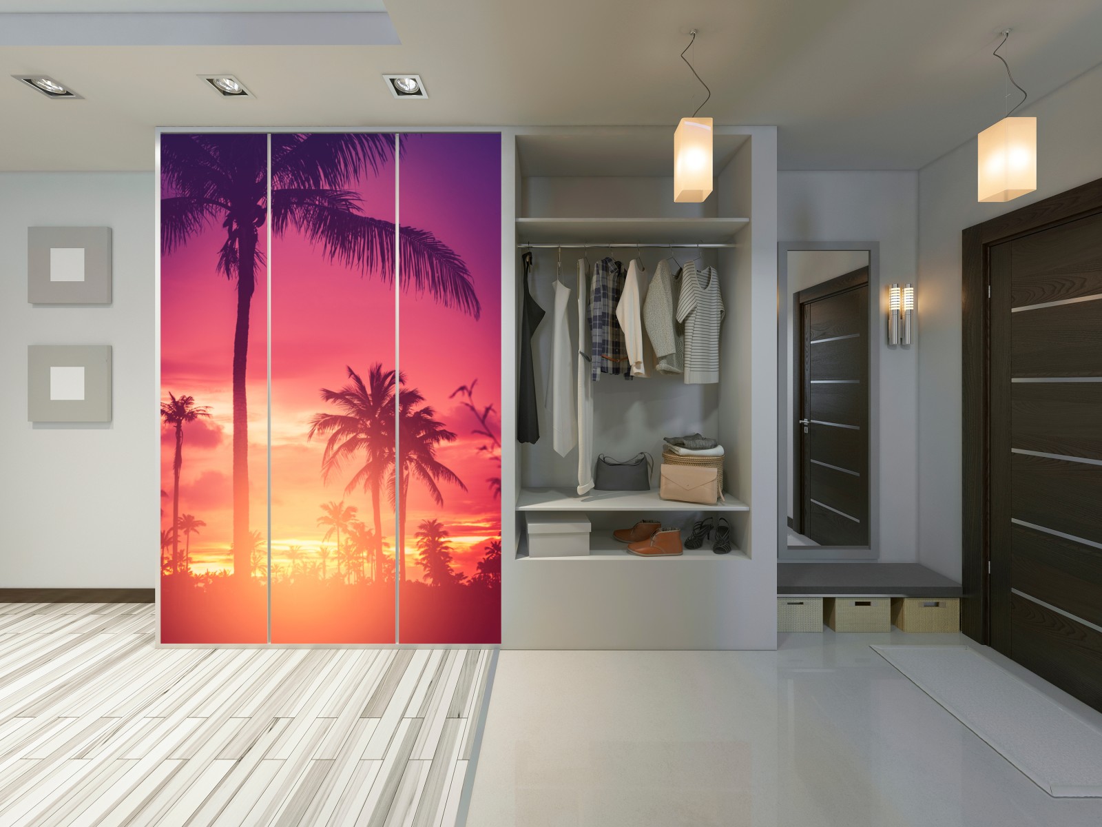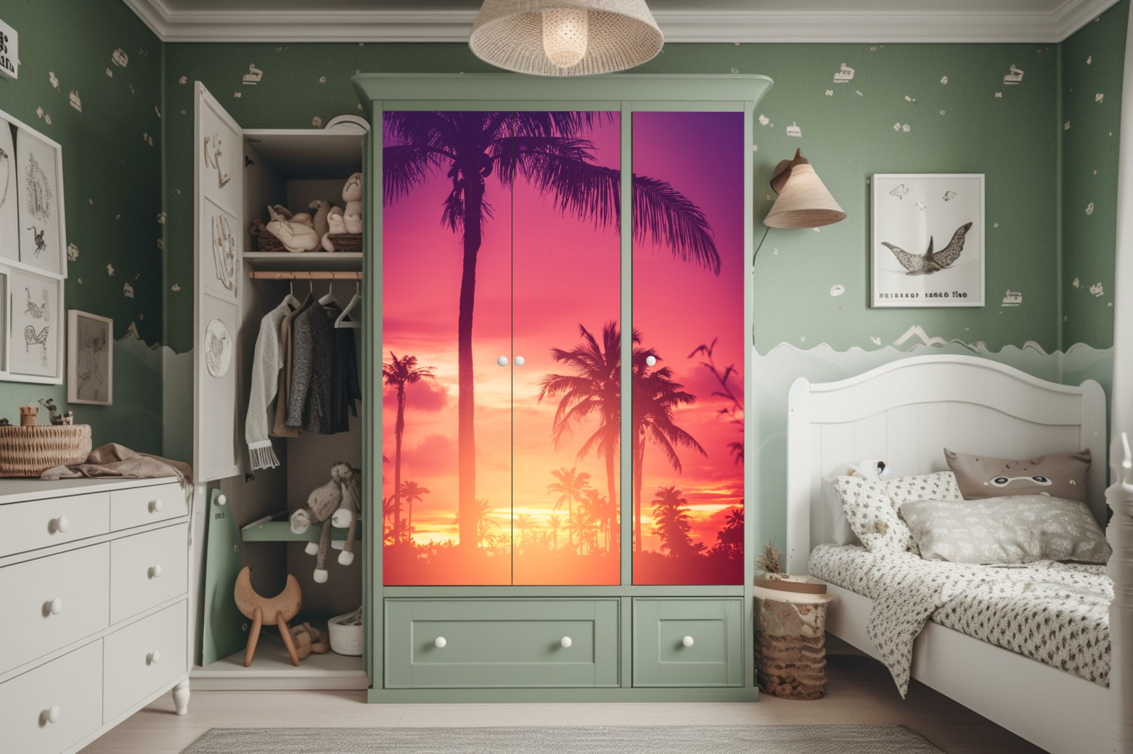 Schrankaufkleber Tropischer sonnenuntergang mit palmen