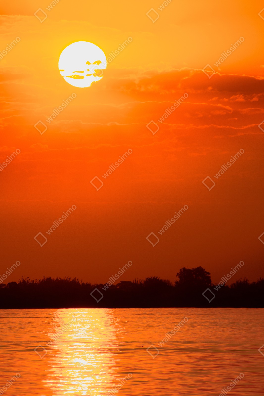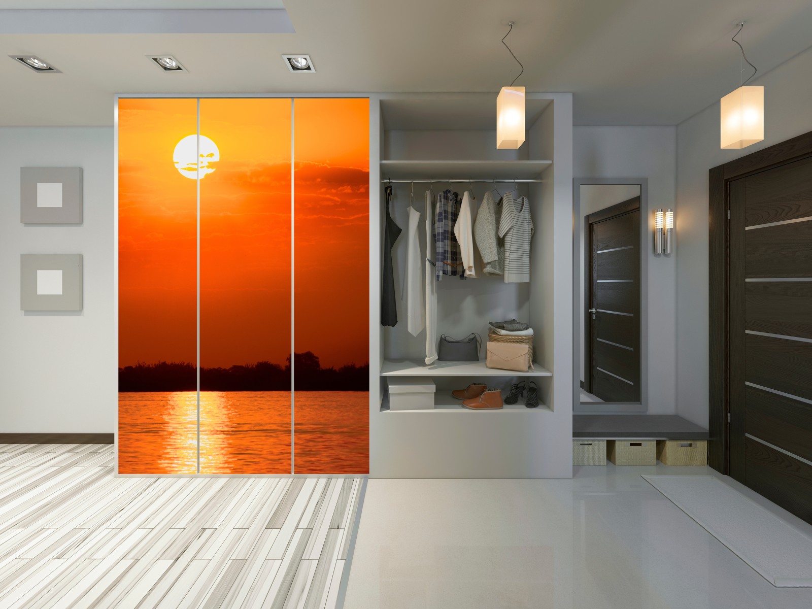 Schrankaufkleber Goldener sonnenuntergang über ruhigem see