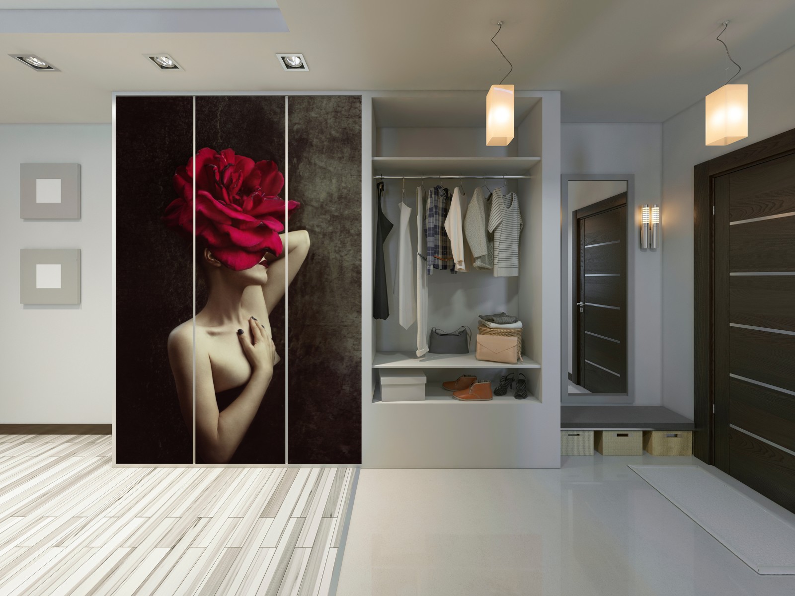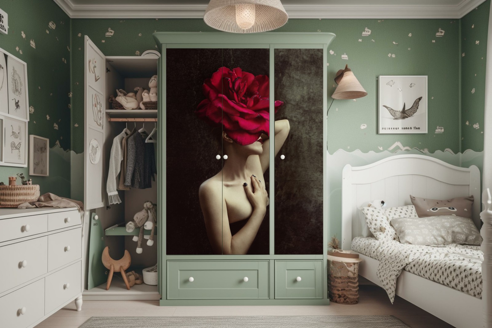 Schrankaufkleber Frau mit rosenkopf surreales blumenporträt