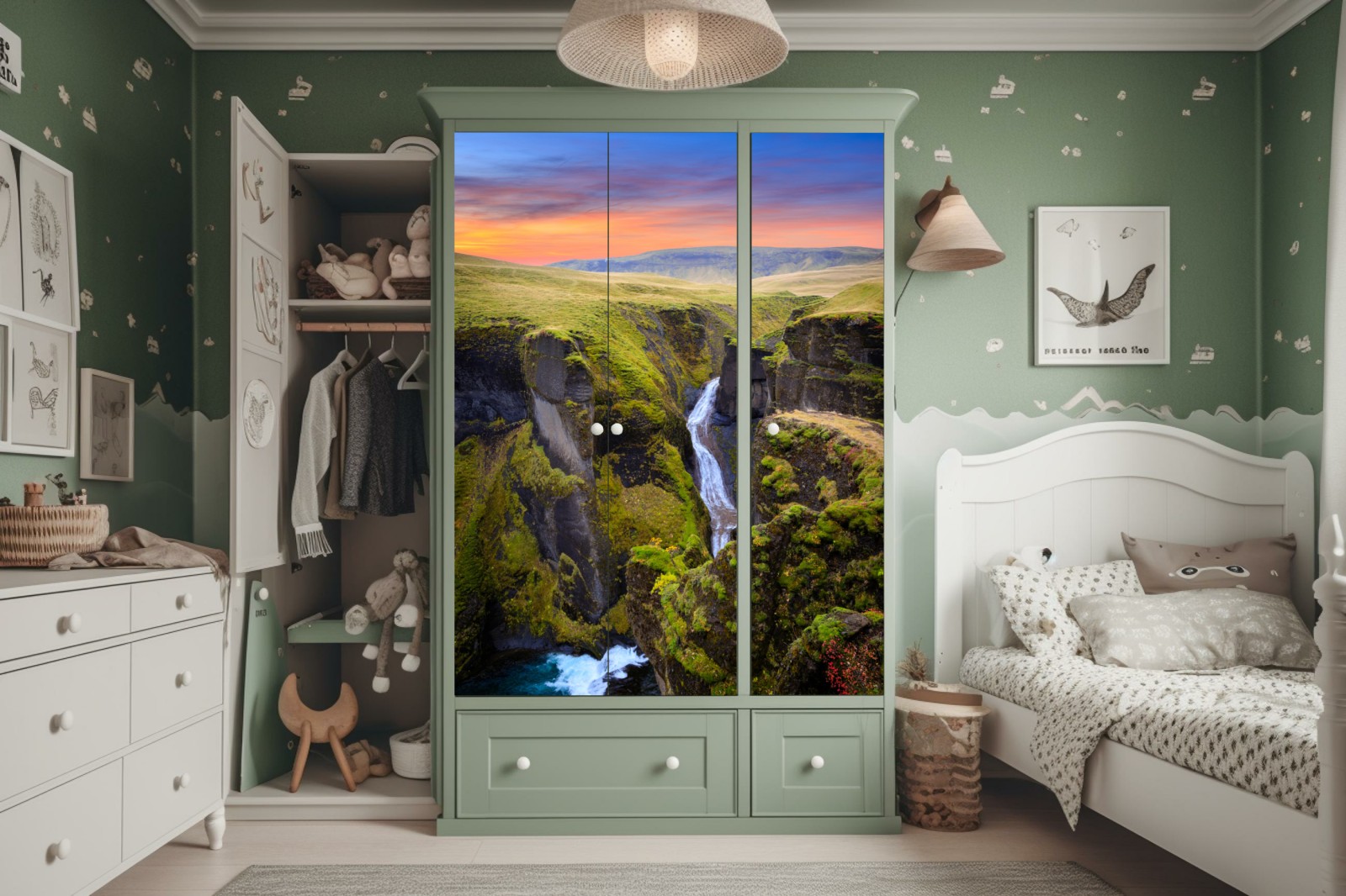 Schrankaufkleber Fjadrargljufur schlucht bei sonnenuntergang