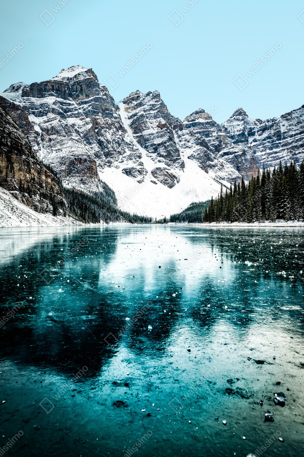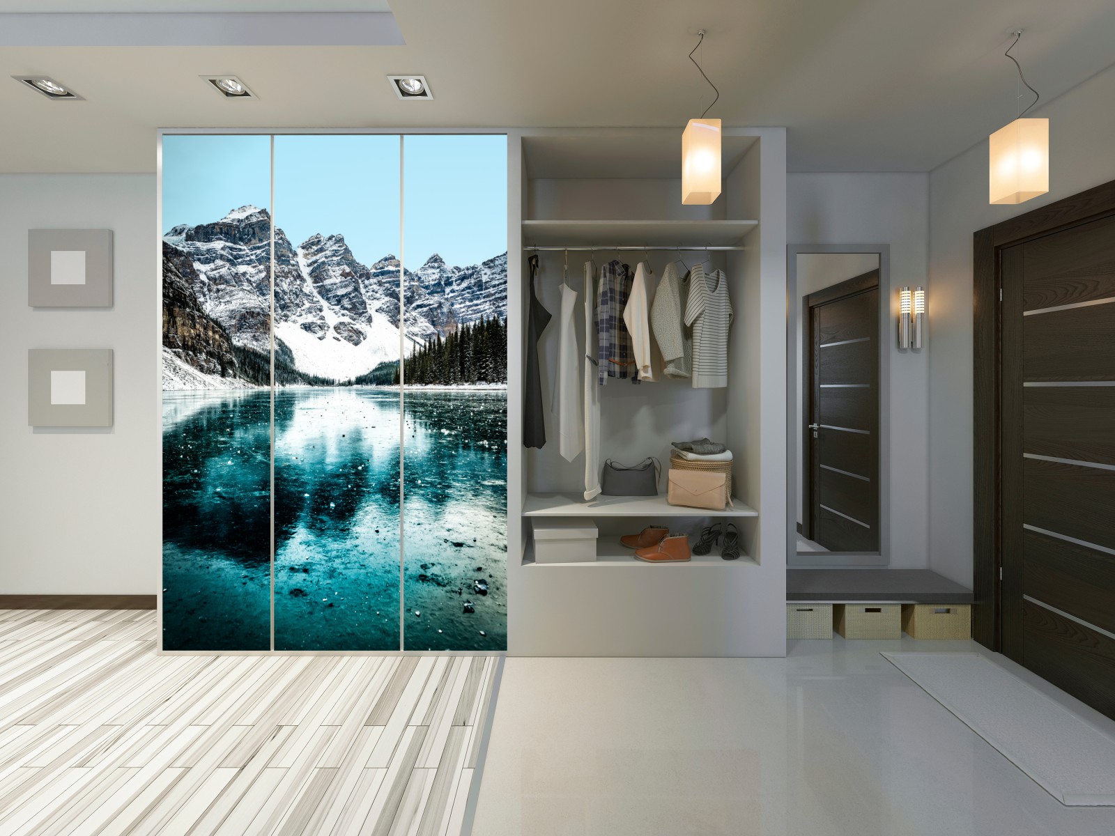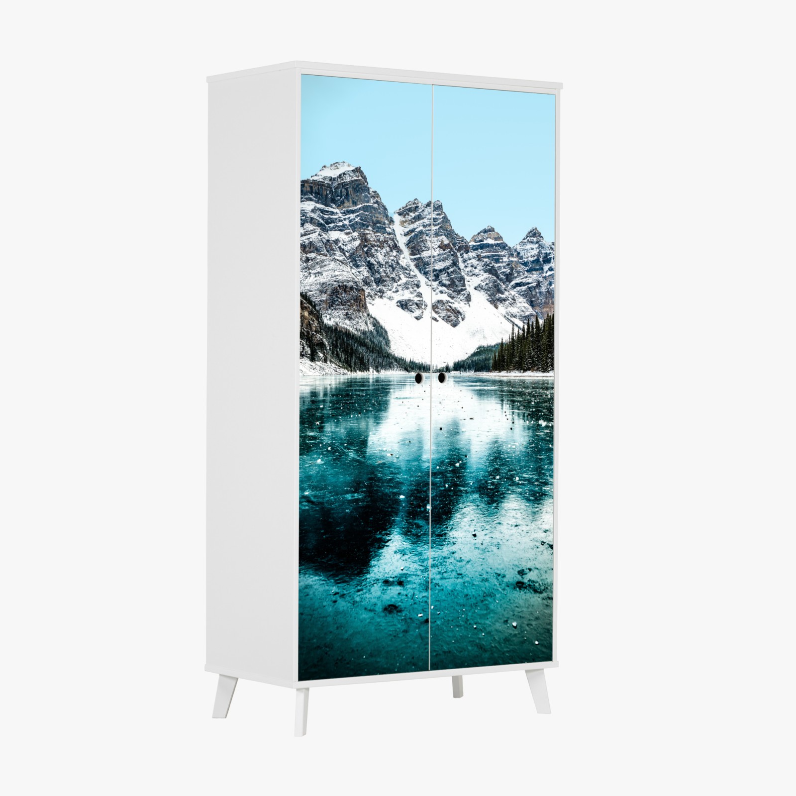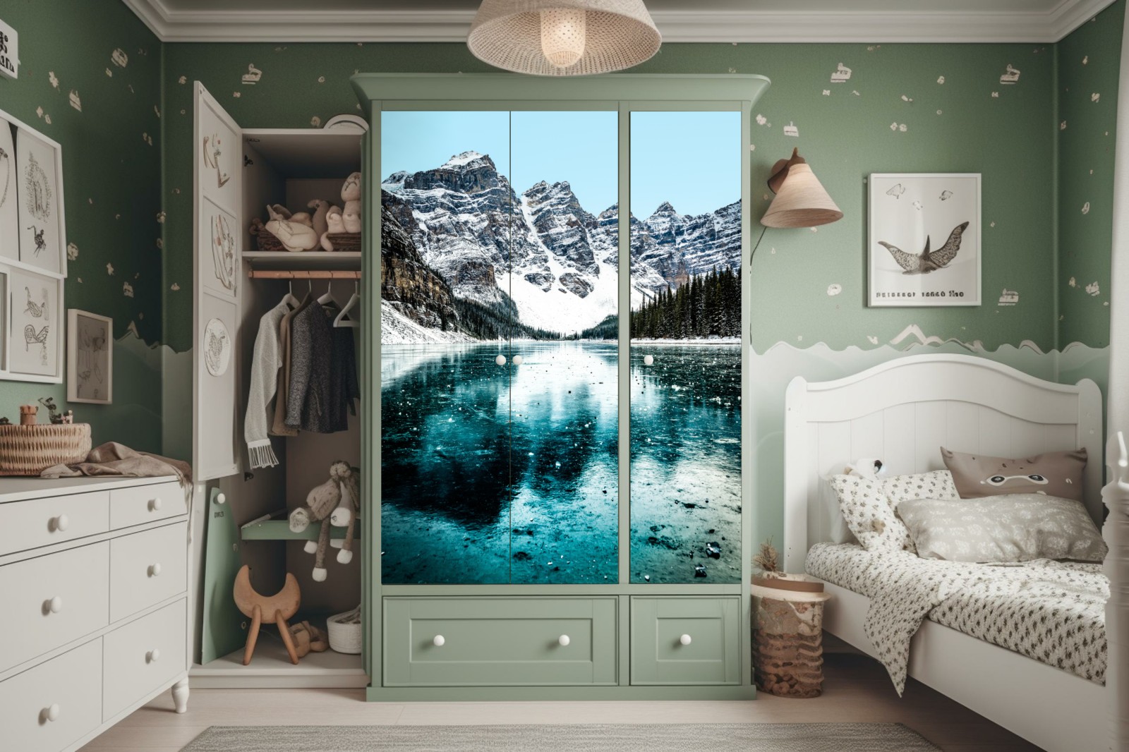 Schrankaufkleber Eisiger türkissee mit bergreflexion