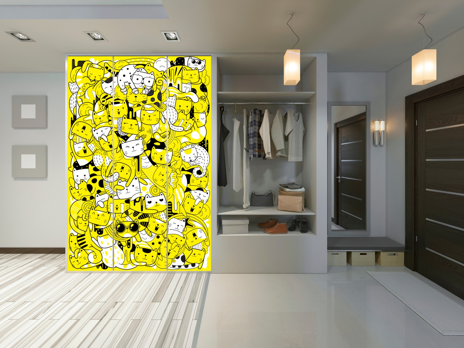 Schrankaufkleber Verspielte gelbe katzen-collage