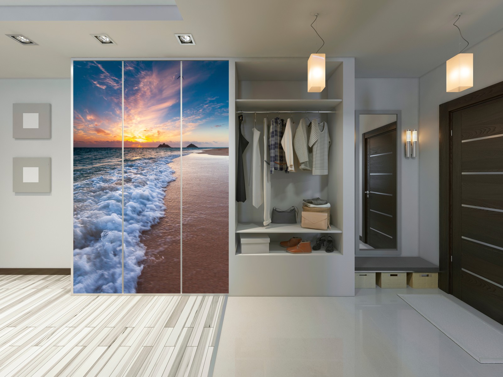 Schrankaufkleber Ruhiger sonnenaufgang am meeresufer