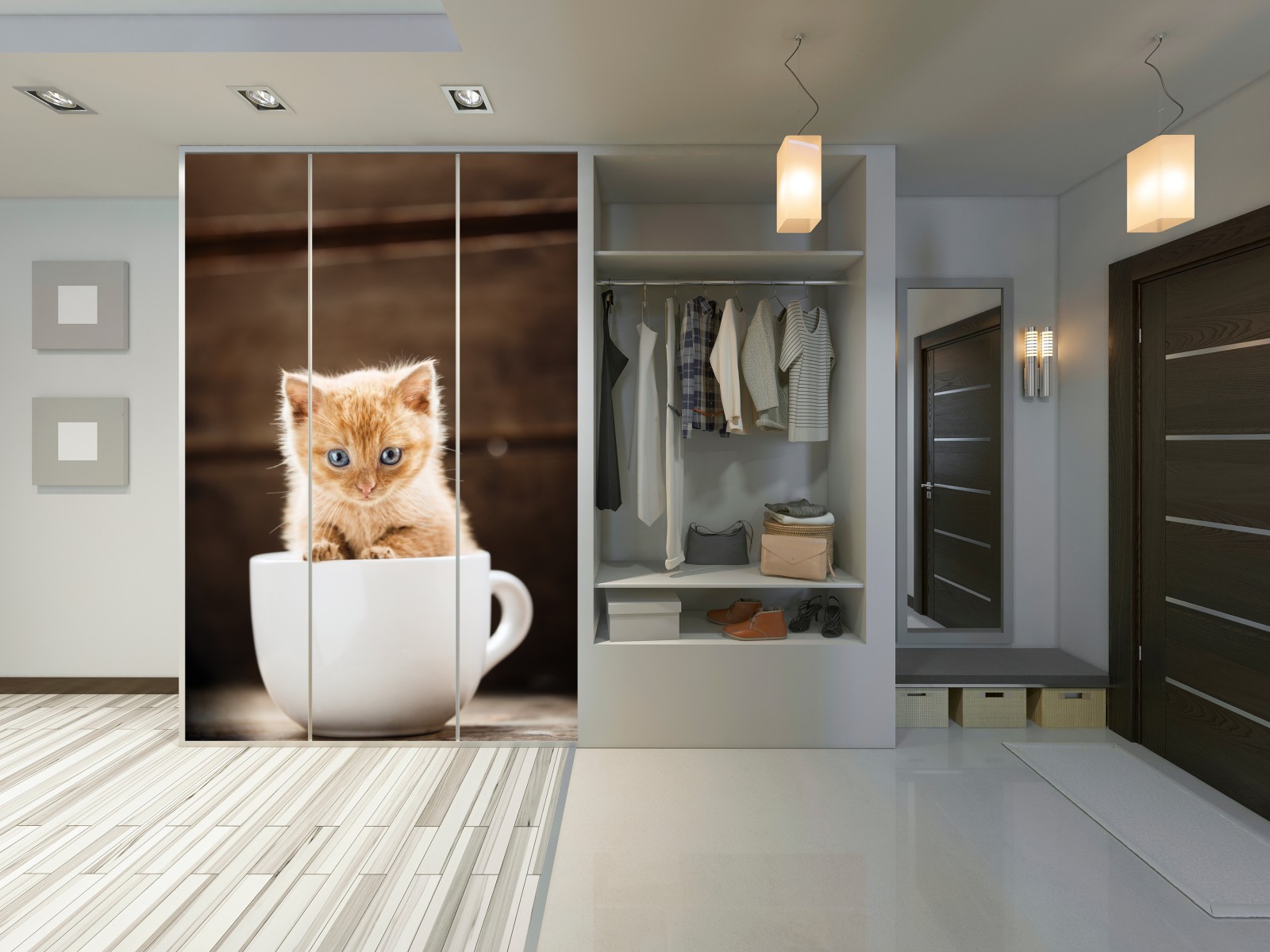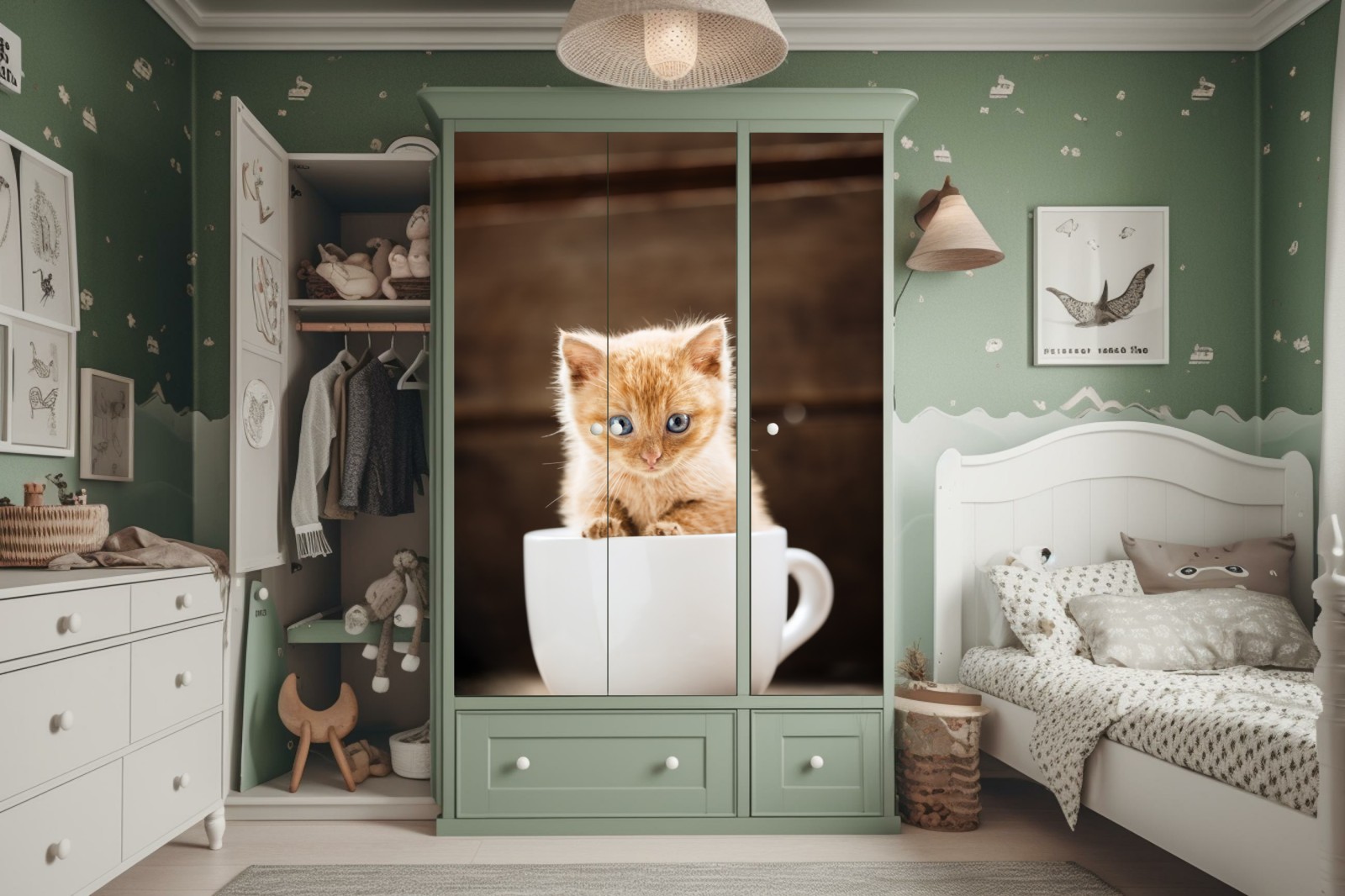 Schrankaufkleber Rötliches kätzchen in einer teetasse