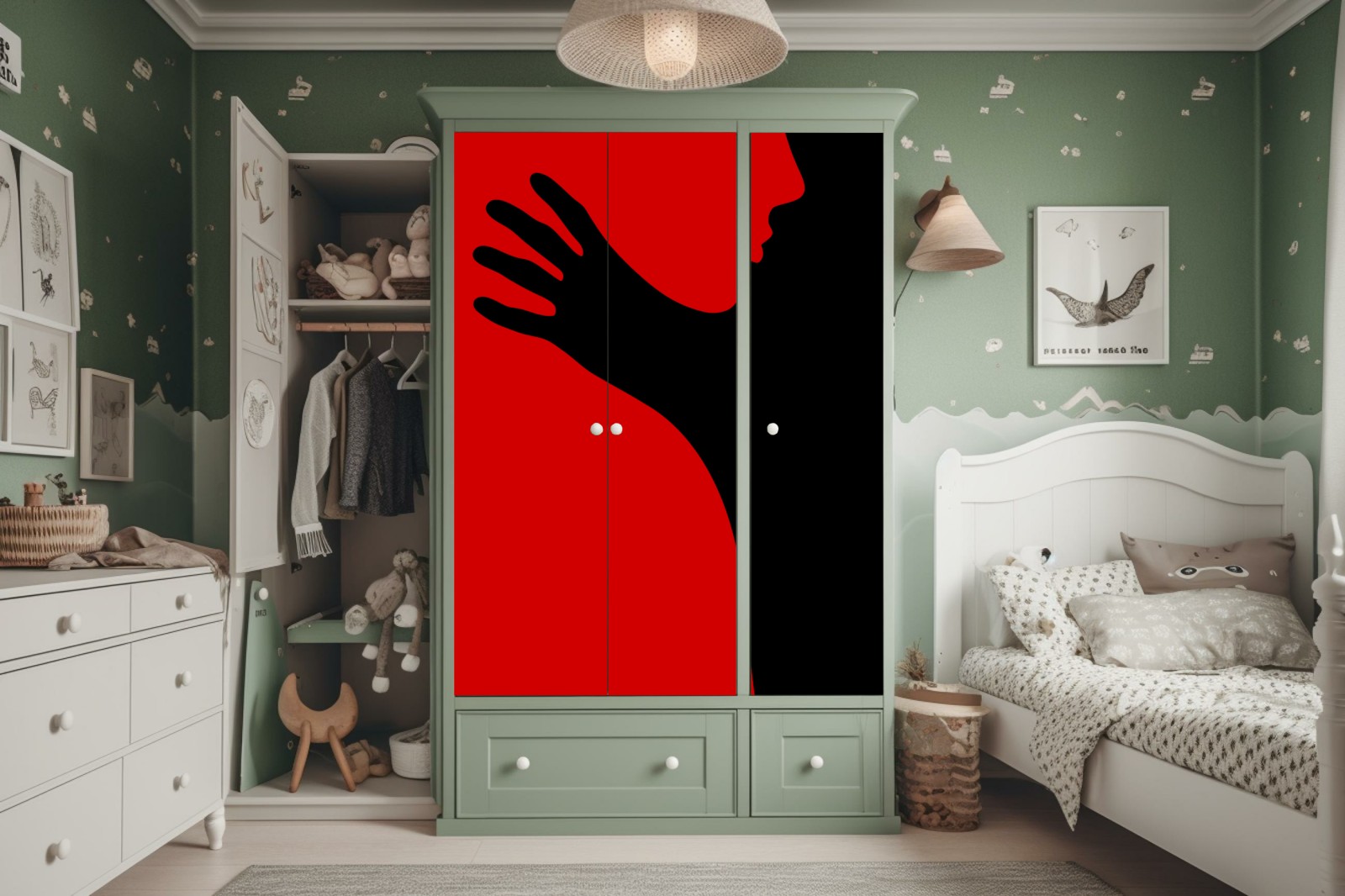 Schrankaufkleber Kräftige rot-schwarze silhouette