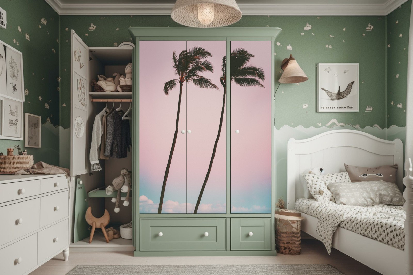 Schrankaufkleber Pastellpalmen bei dämmerung
