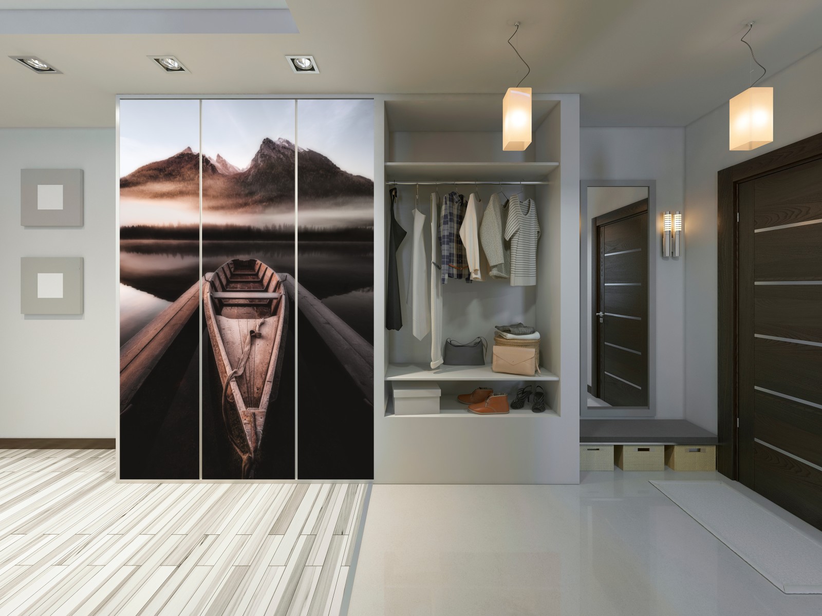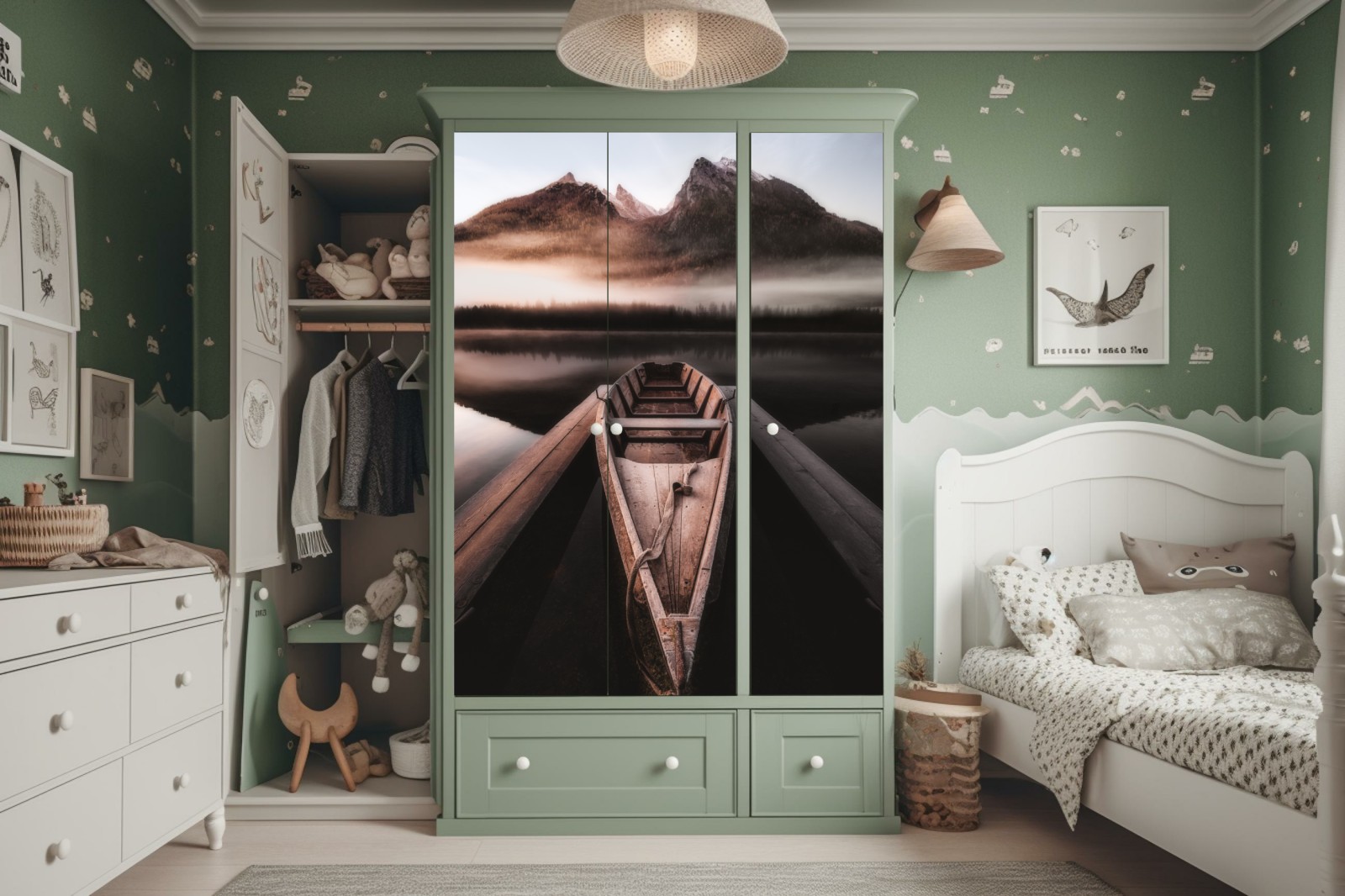 Schrankaufkleber Nebliges boot am bergsee