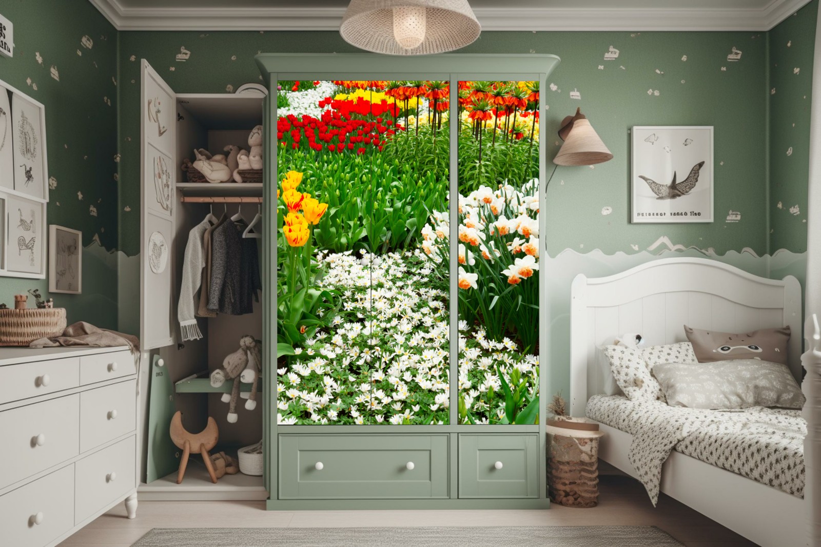 Schrankaufkleber Lebendiger frühlingsblumengarten
