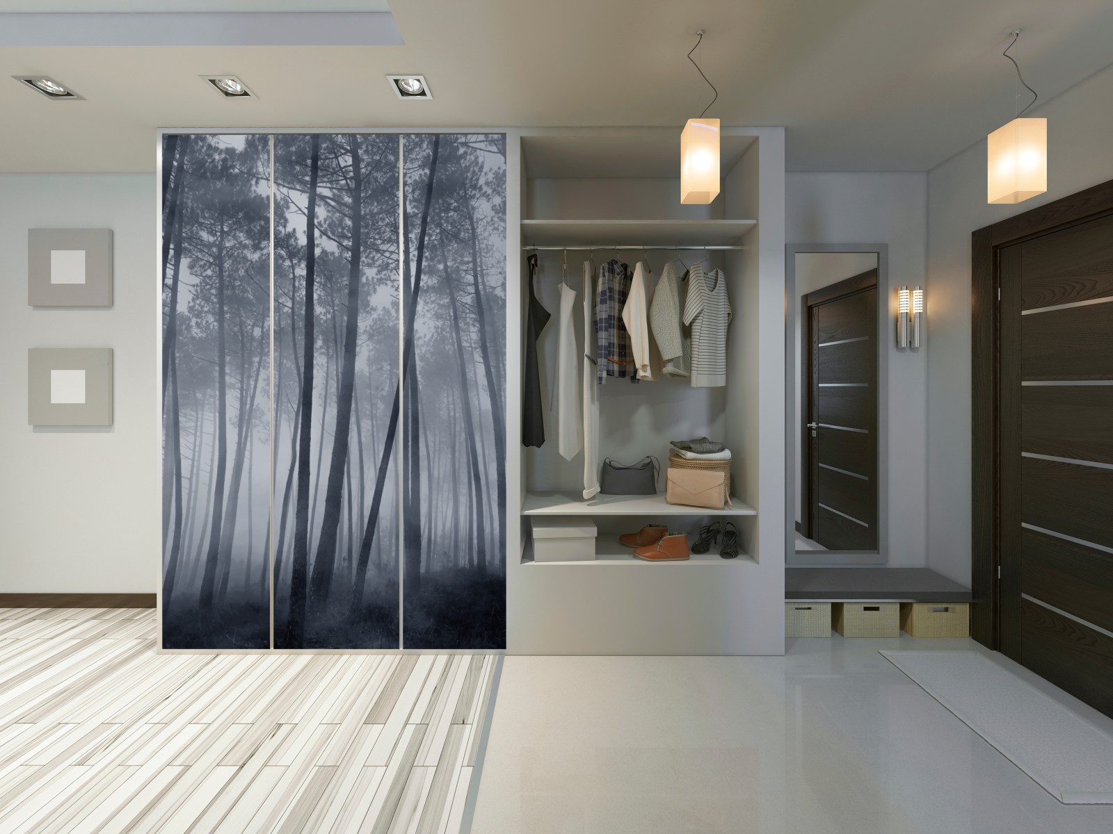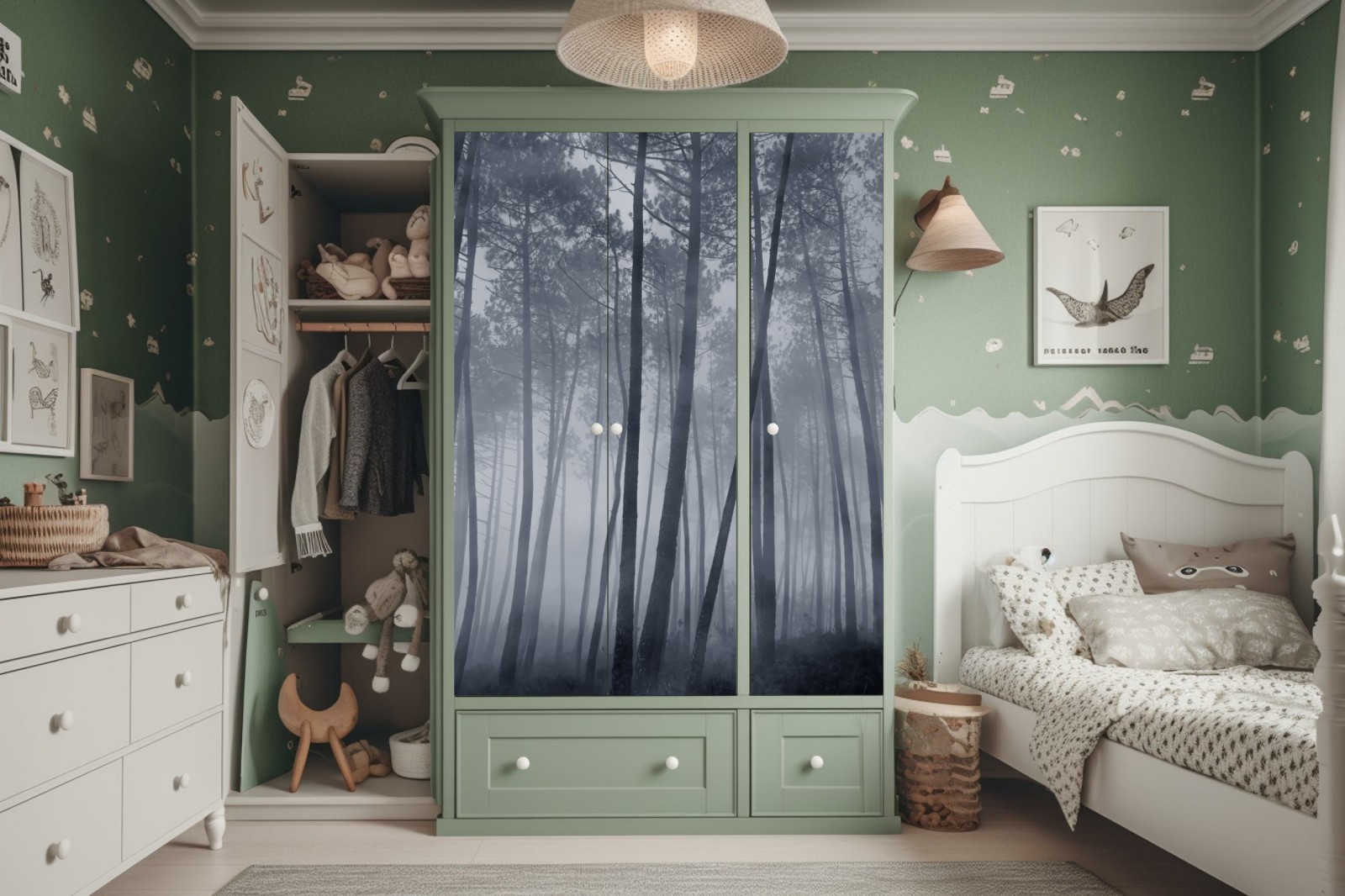 Schrankaufkleber Nebliger kiefernwald bei nacht