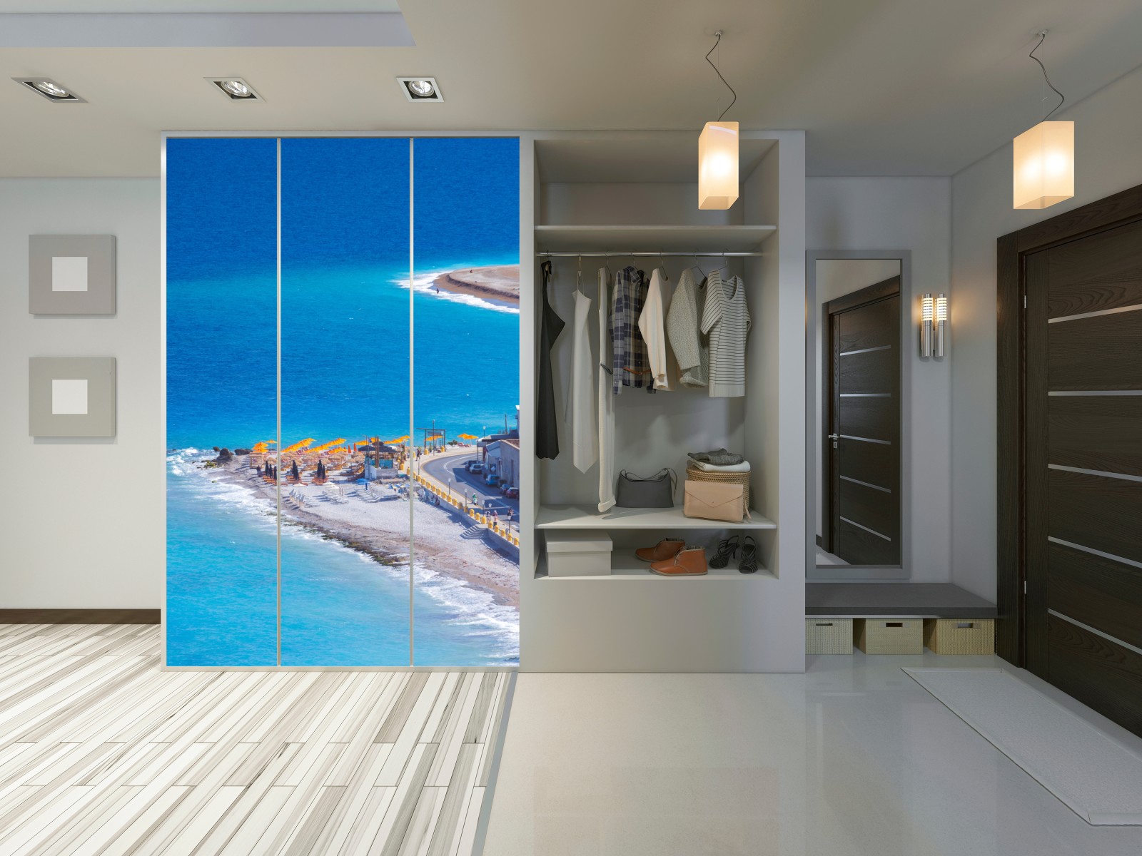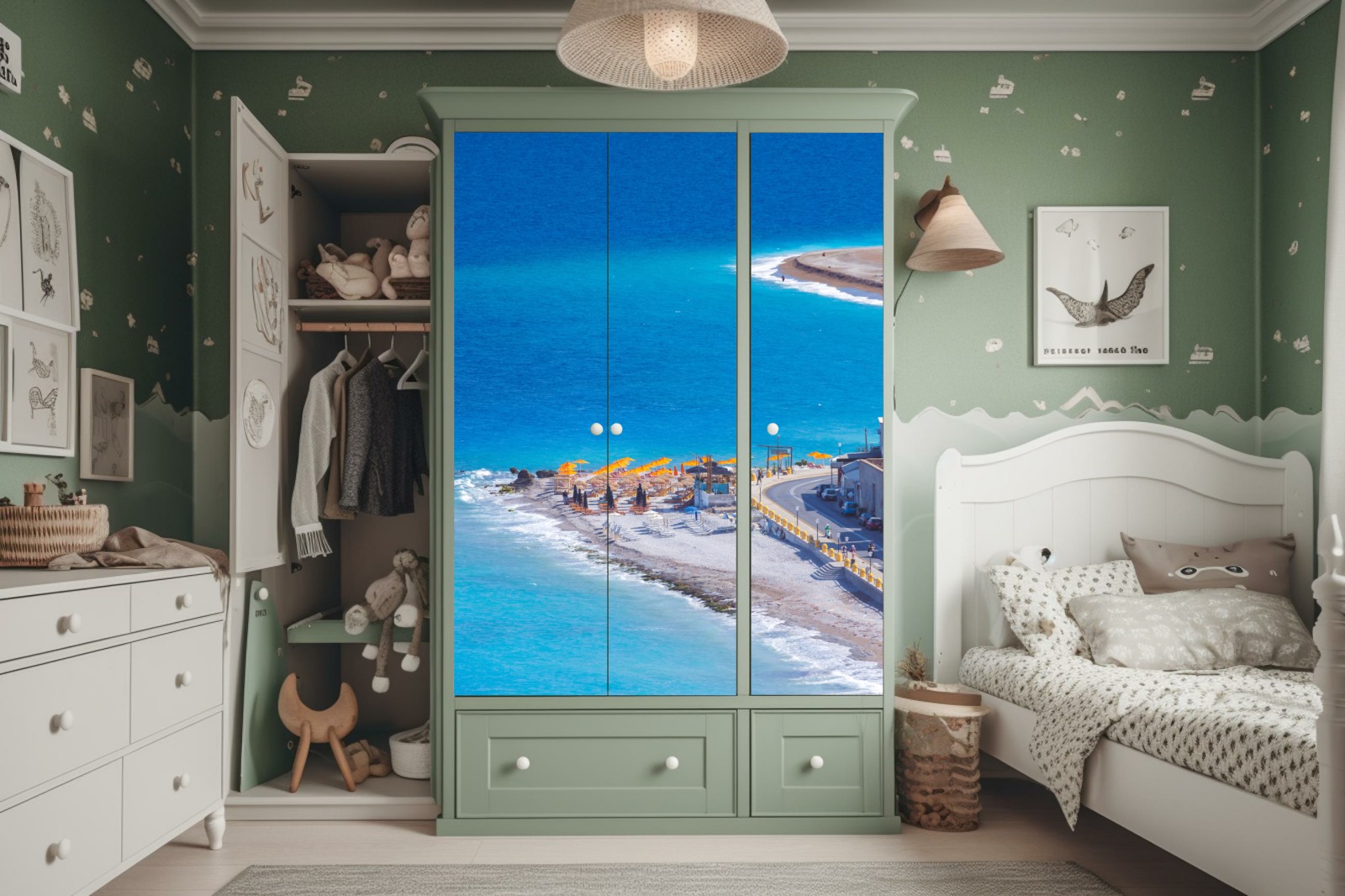 Schrankaufkleber Rhodos strand mit bunten sonnenschirmen