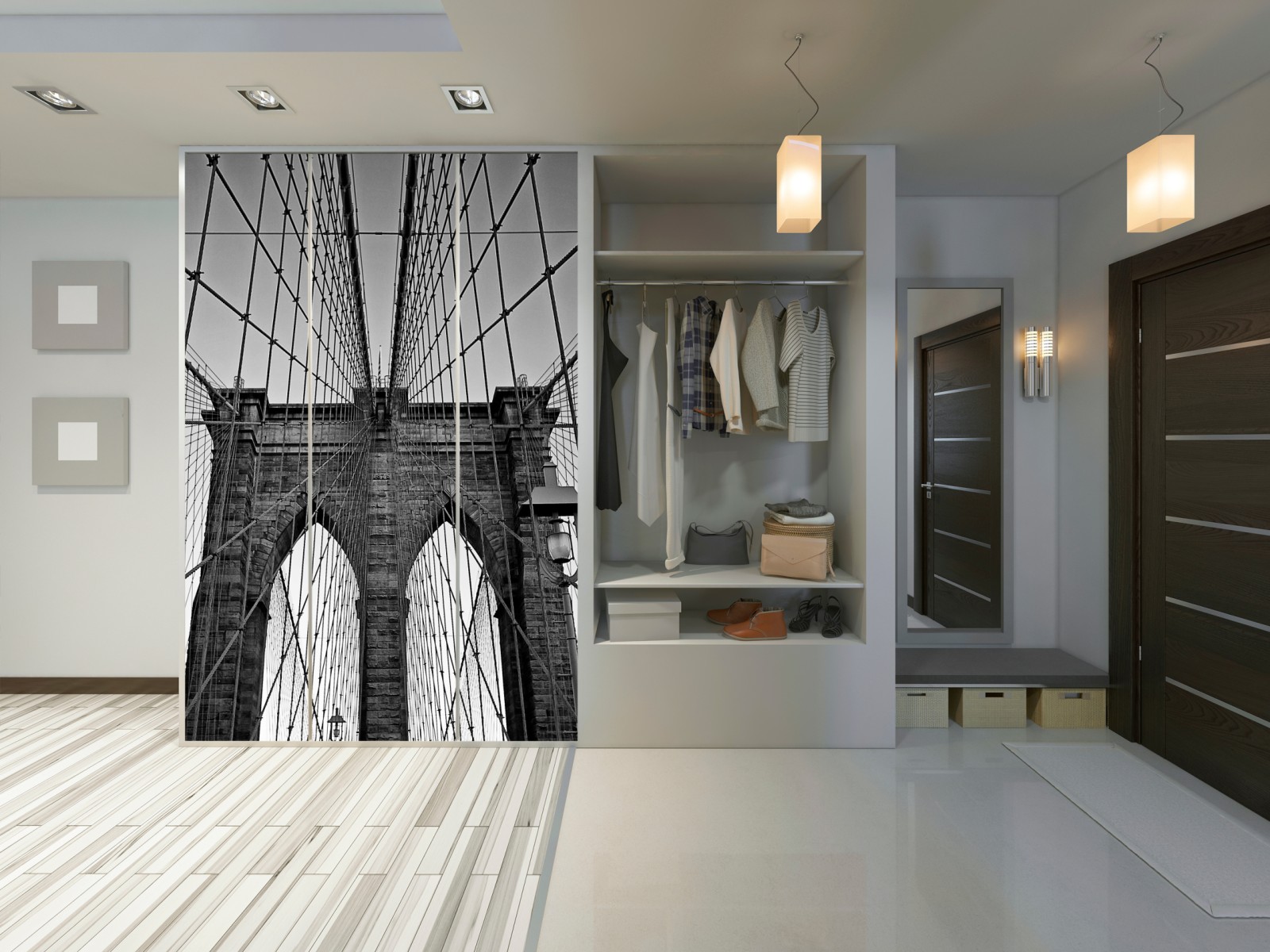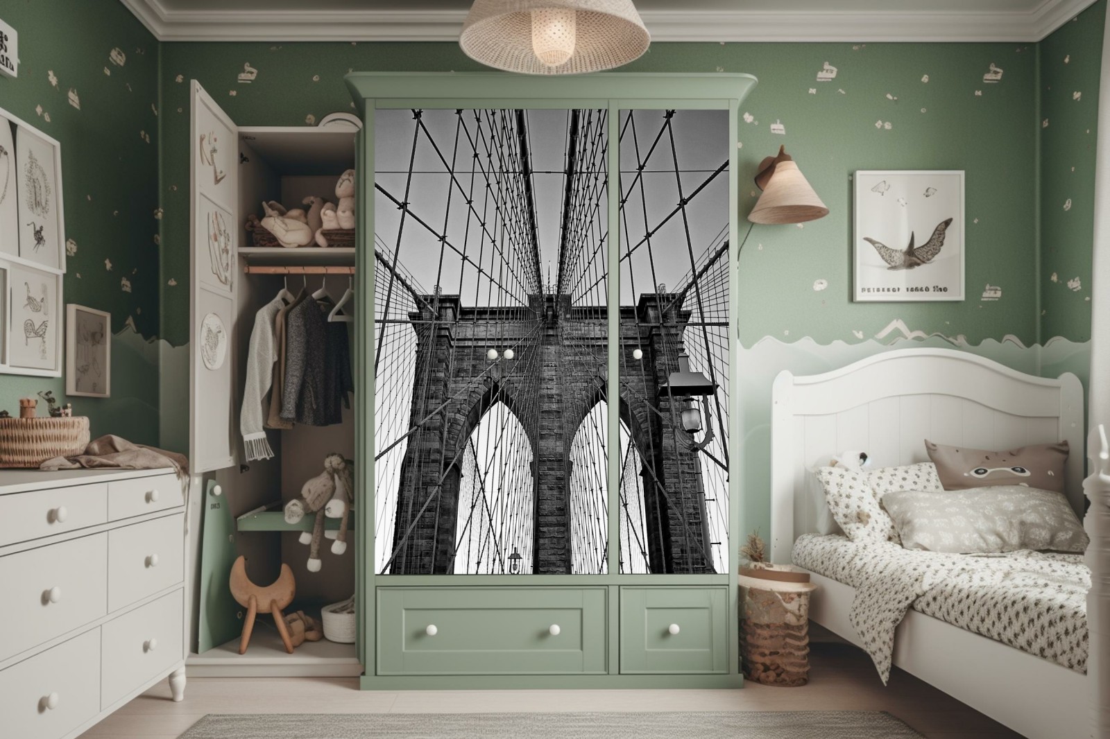 Schrankaufkleber Symmetrische hängebrücke in schwarzweiß