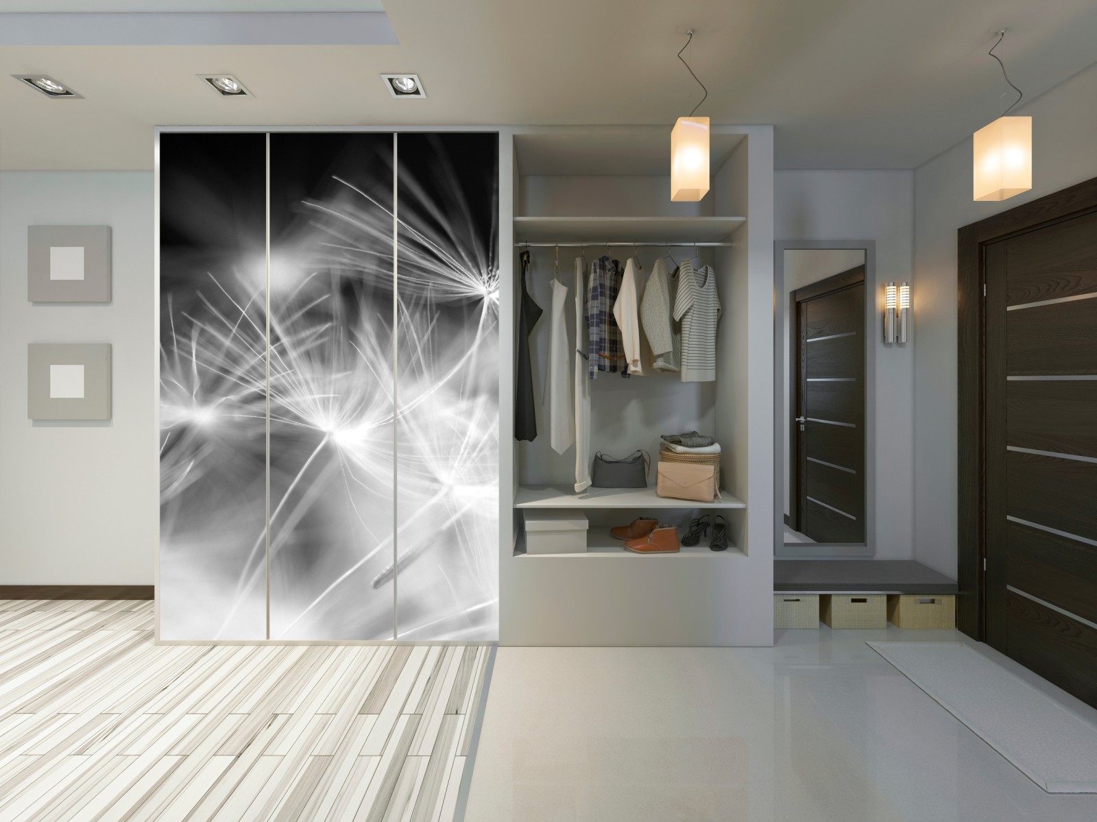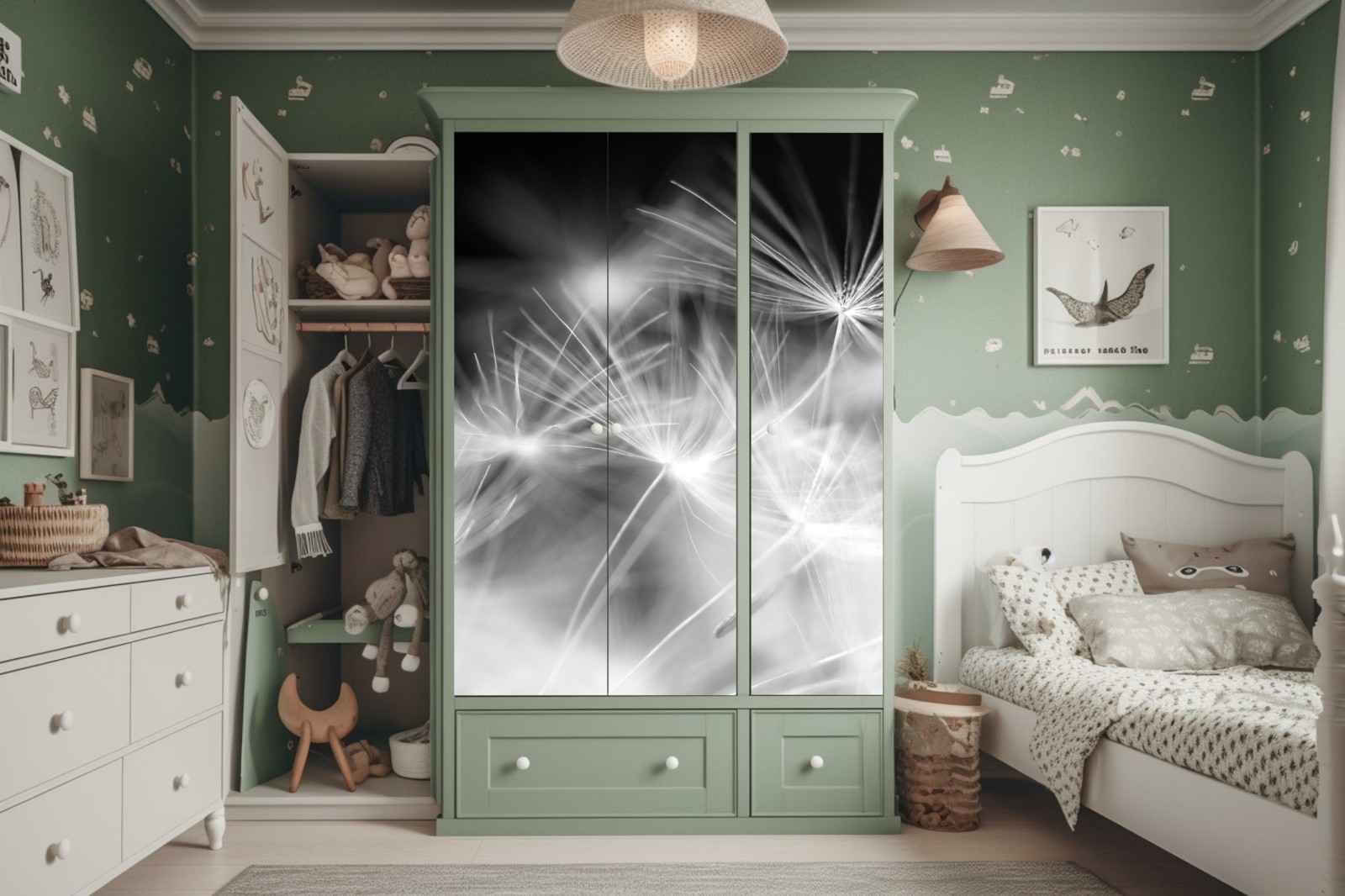 Schrankaufkleber Zarte löwenzahnsamen in monochrom