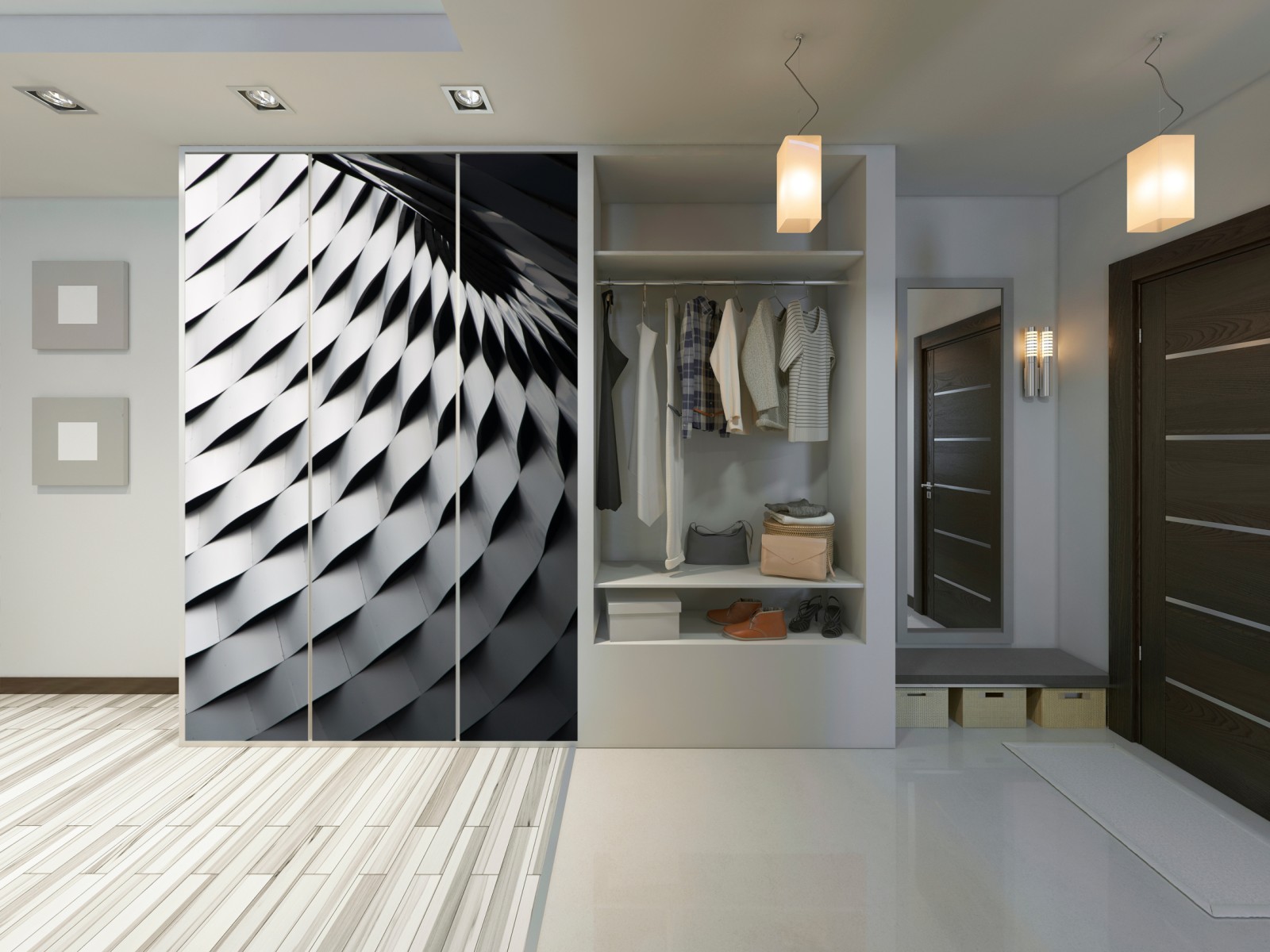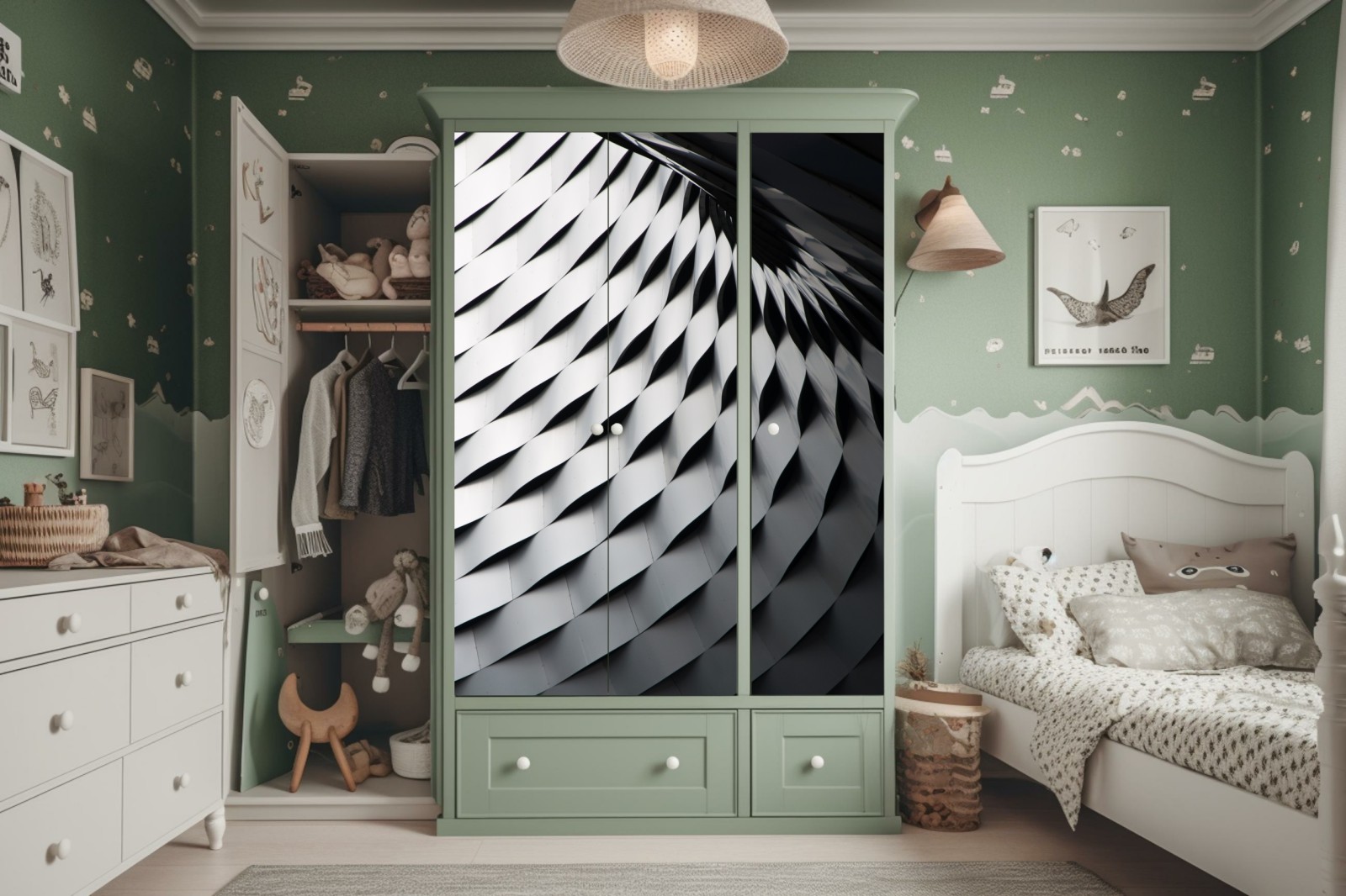 Schrankaufkleber Monochromes geometrisches metallmuster
