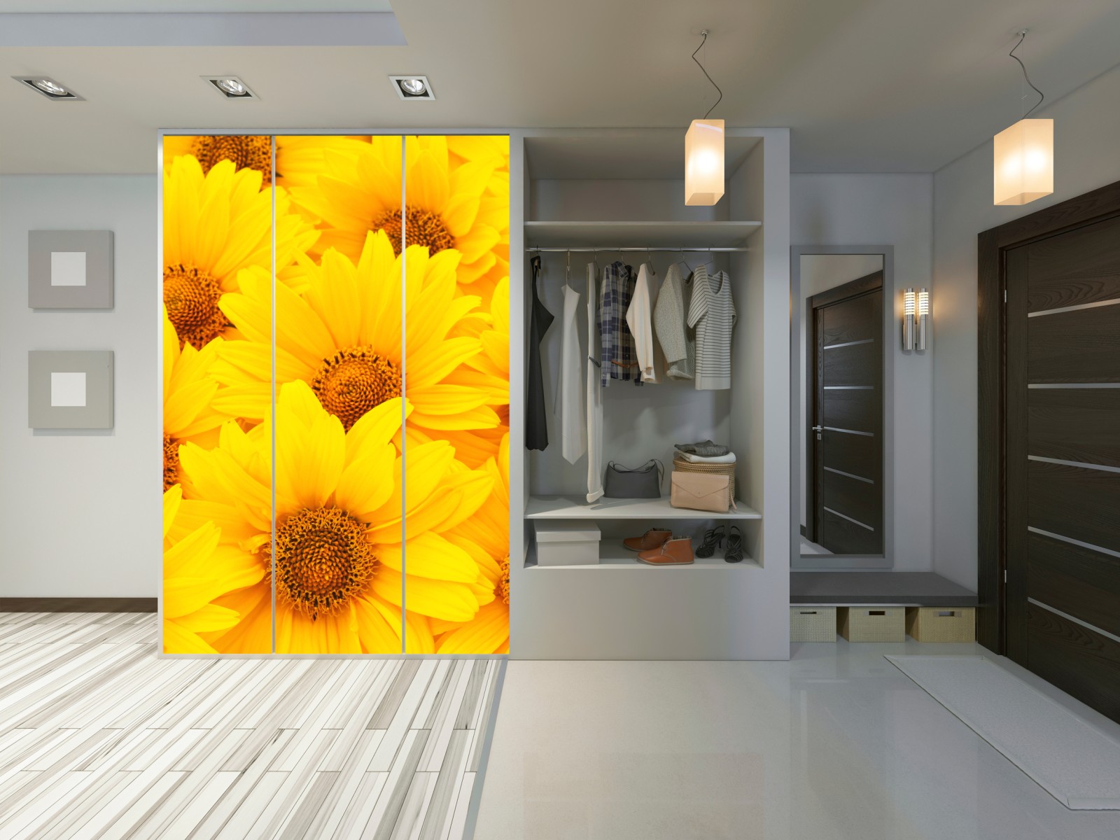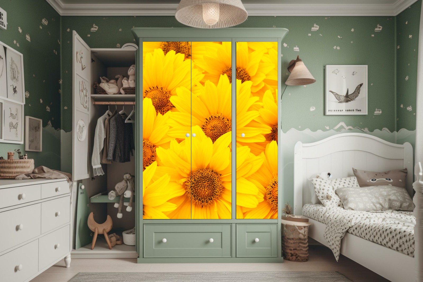 Schrankaufkleber Leuchtende gelbe sonnenblumen in nahaufnahme