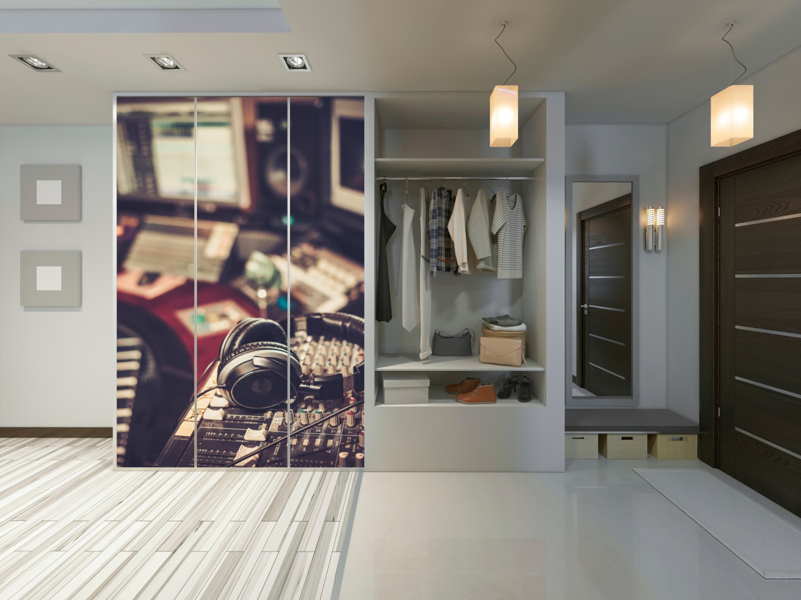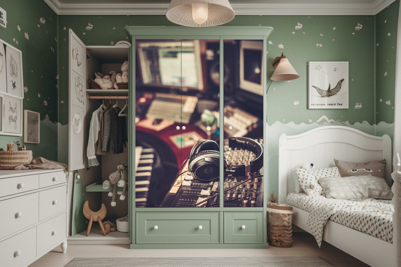 Schrankaufkleber Vintage aufnahmestudio am mischpult