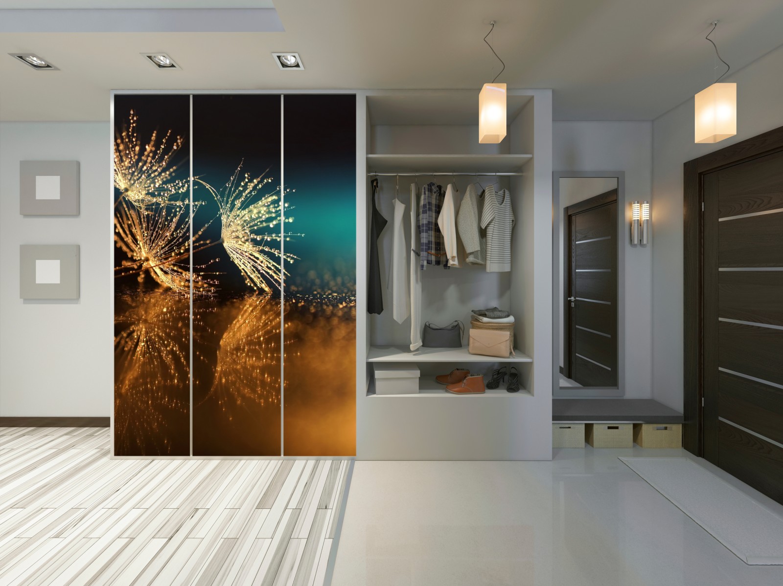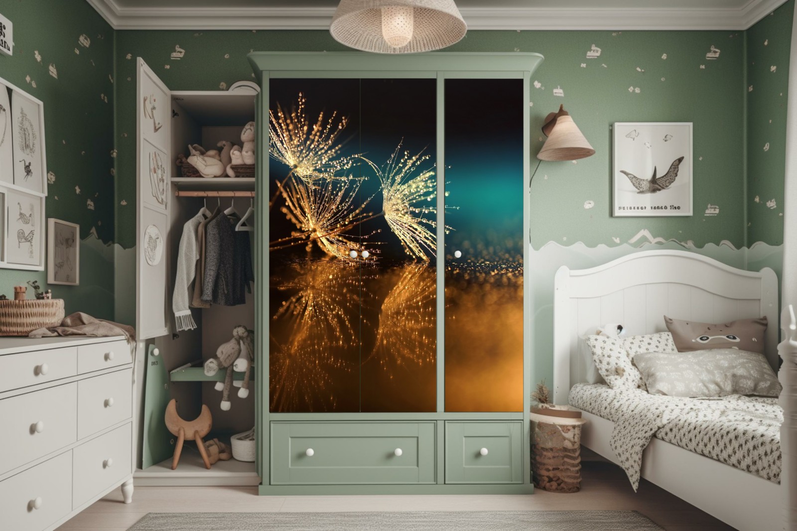 Schrankaufkleber Goldene reflexion von löwenzahnsamen