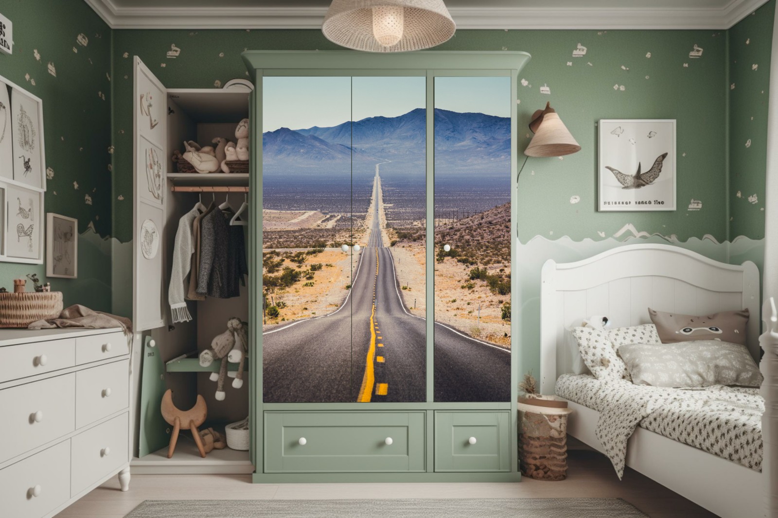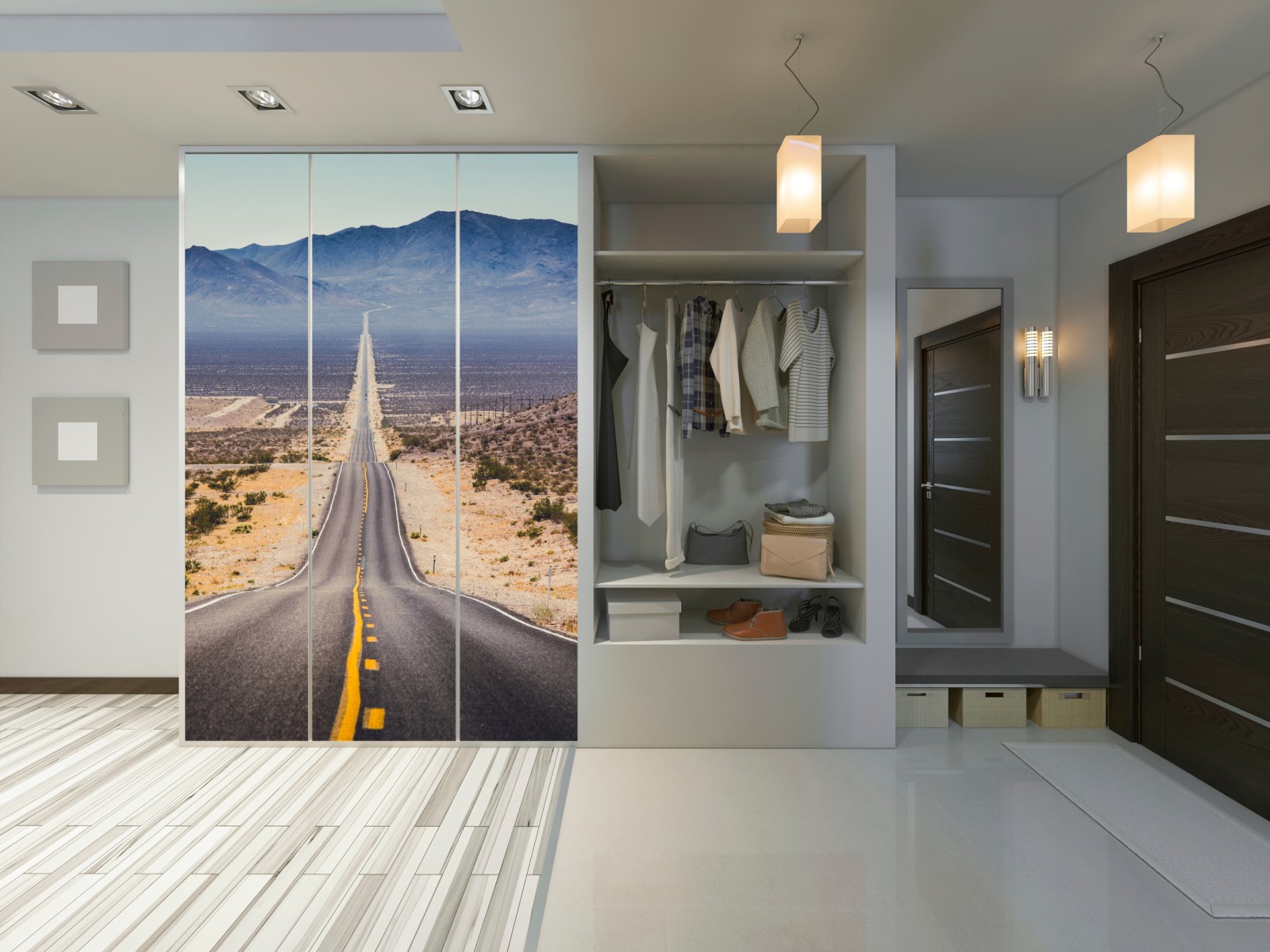 Schrankaufkleber Endlose wüstenstraße in die berge