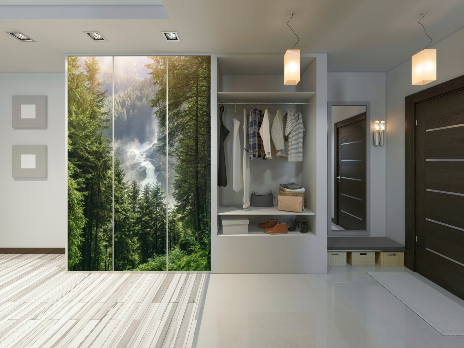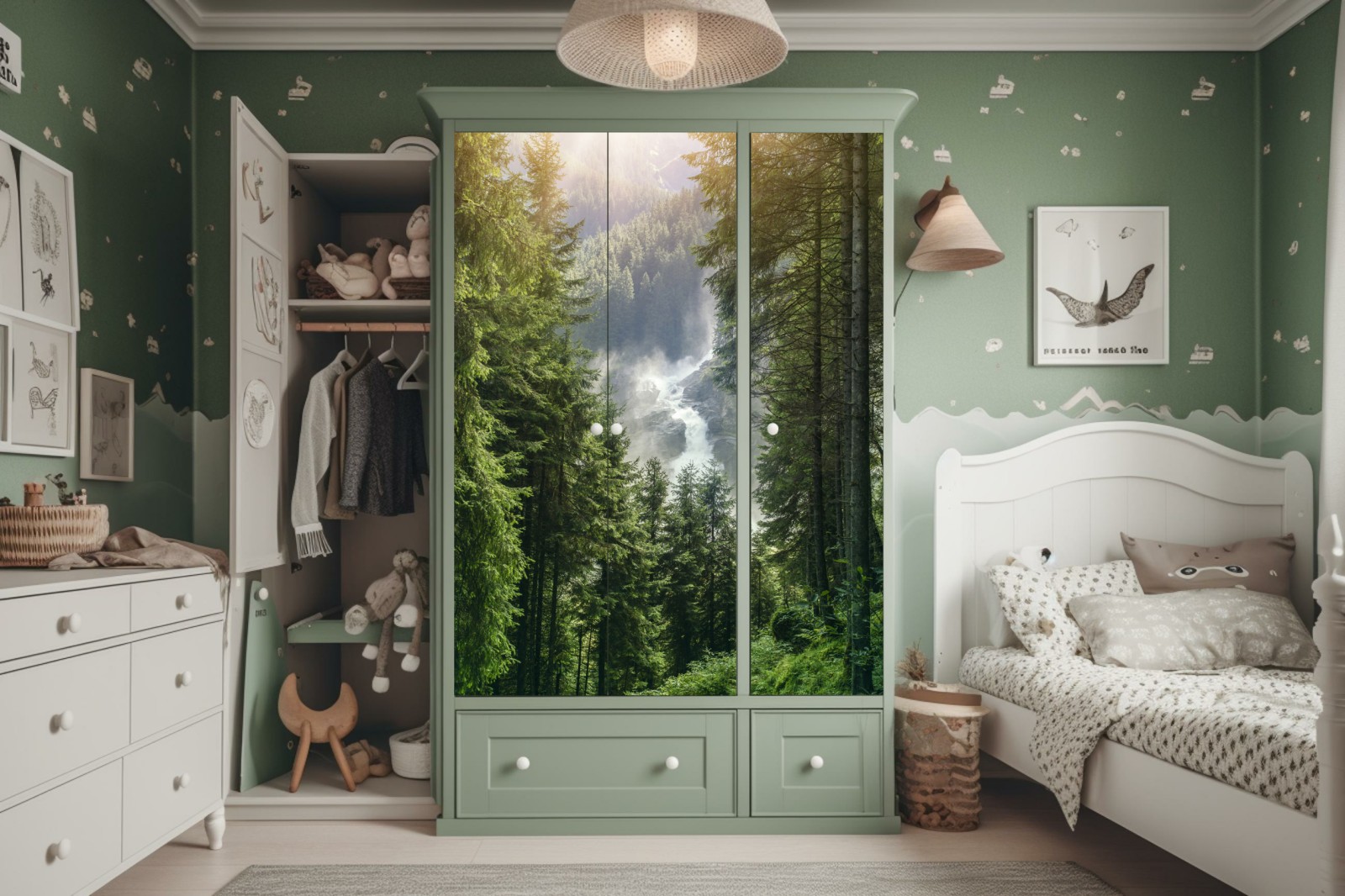 Schrankaufkleber Krimml wasserfall im üppigen alpinen wald