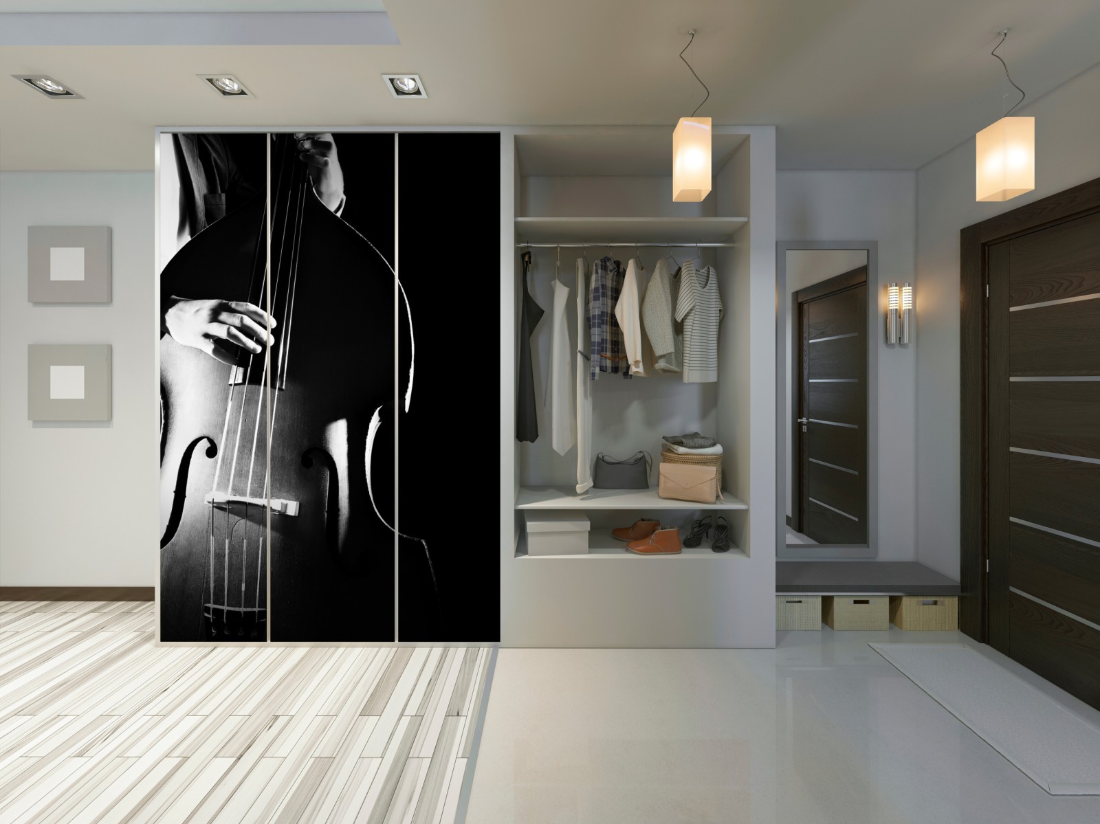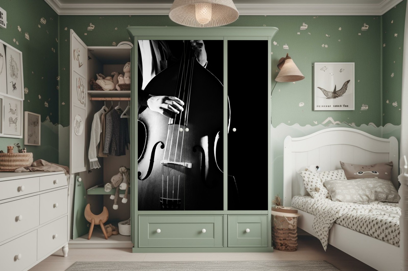 Schrankaufkleber Kontrabassist im dramatischen licht