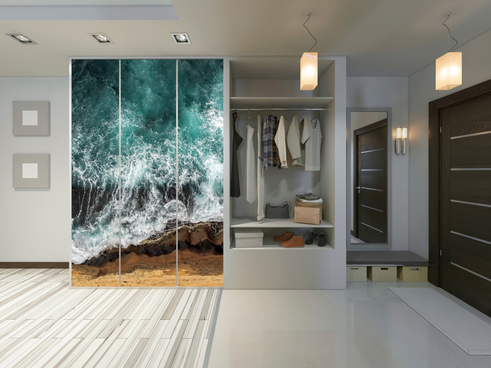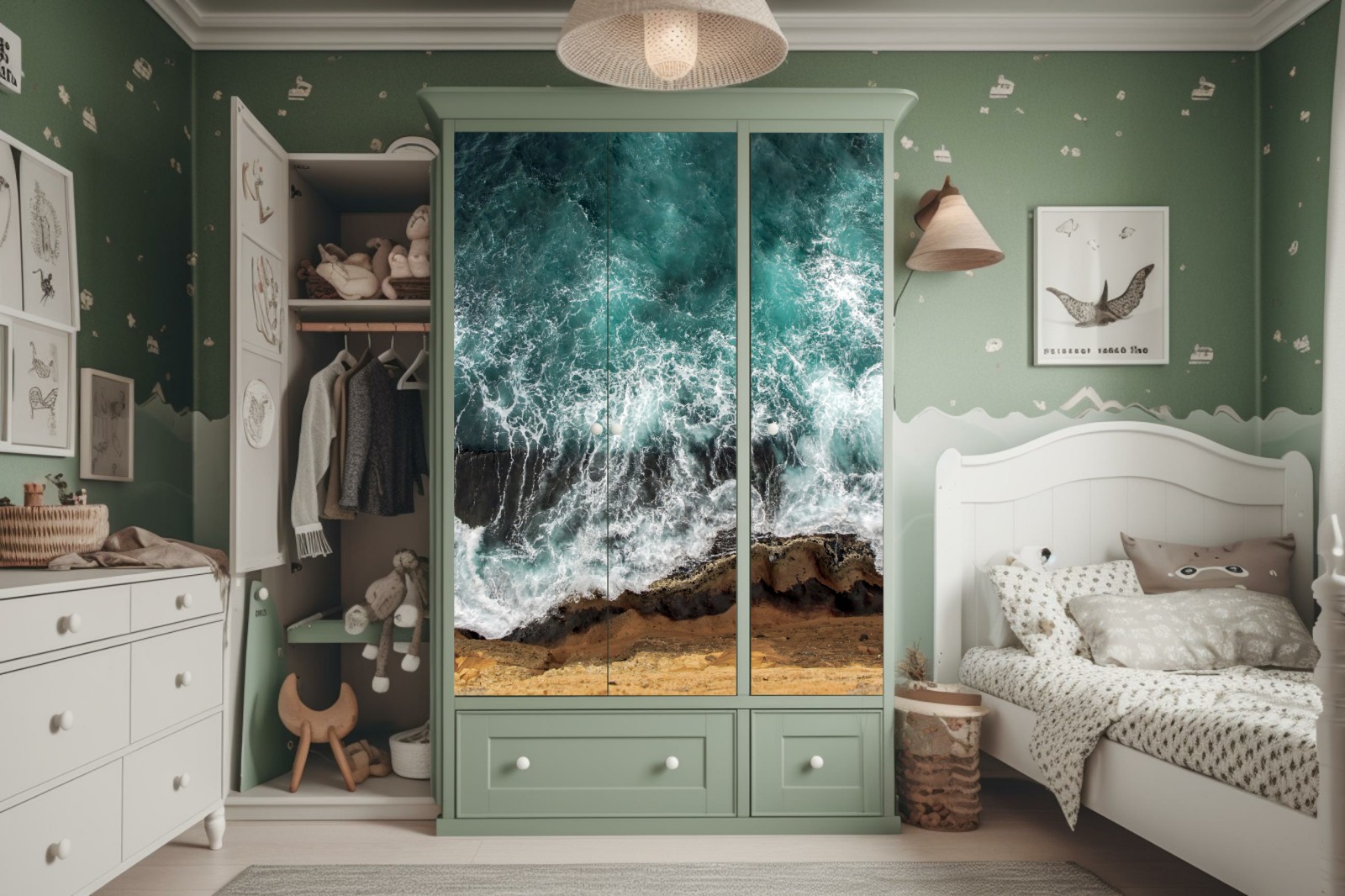 Schrankaufkleber Türkise küste aus der vogelperspektive mit brandenden wellen