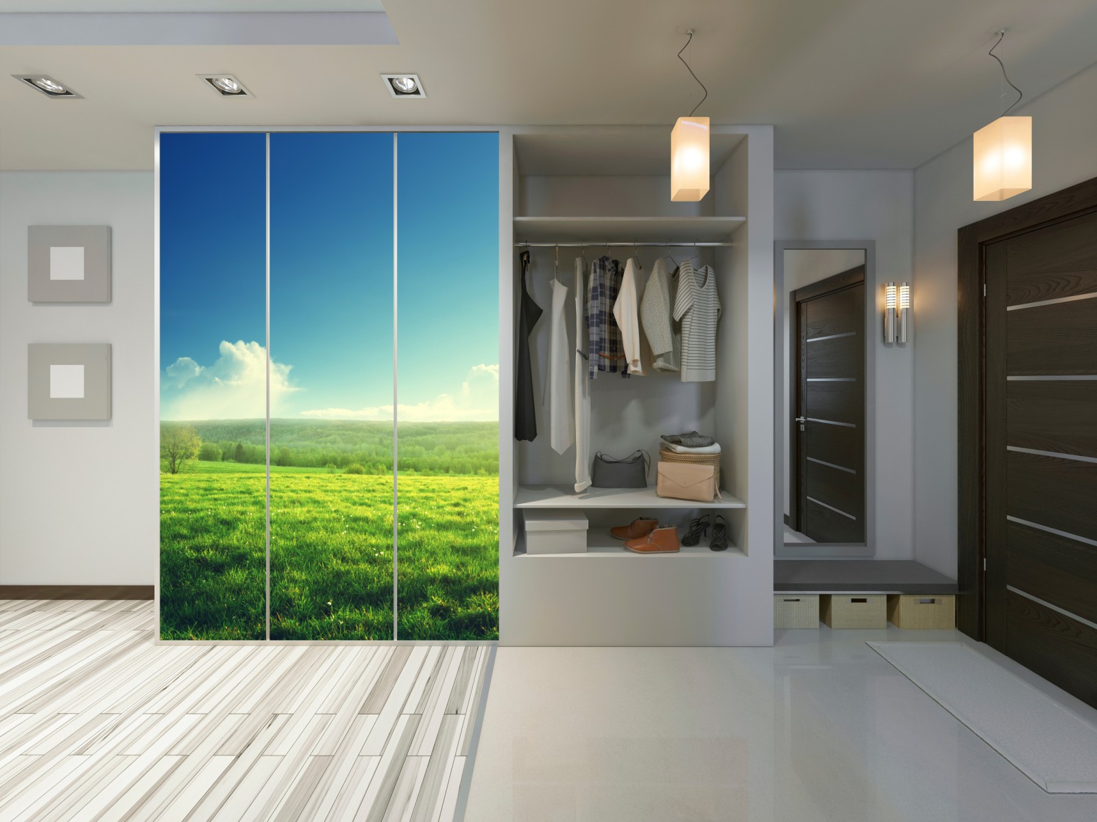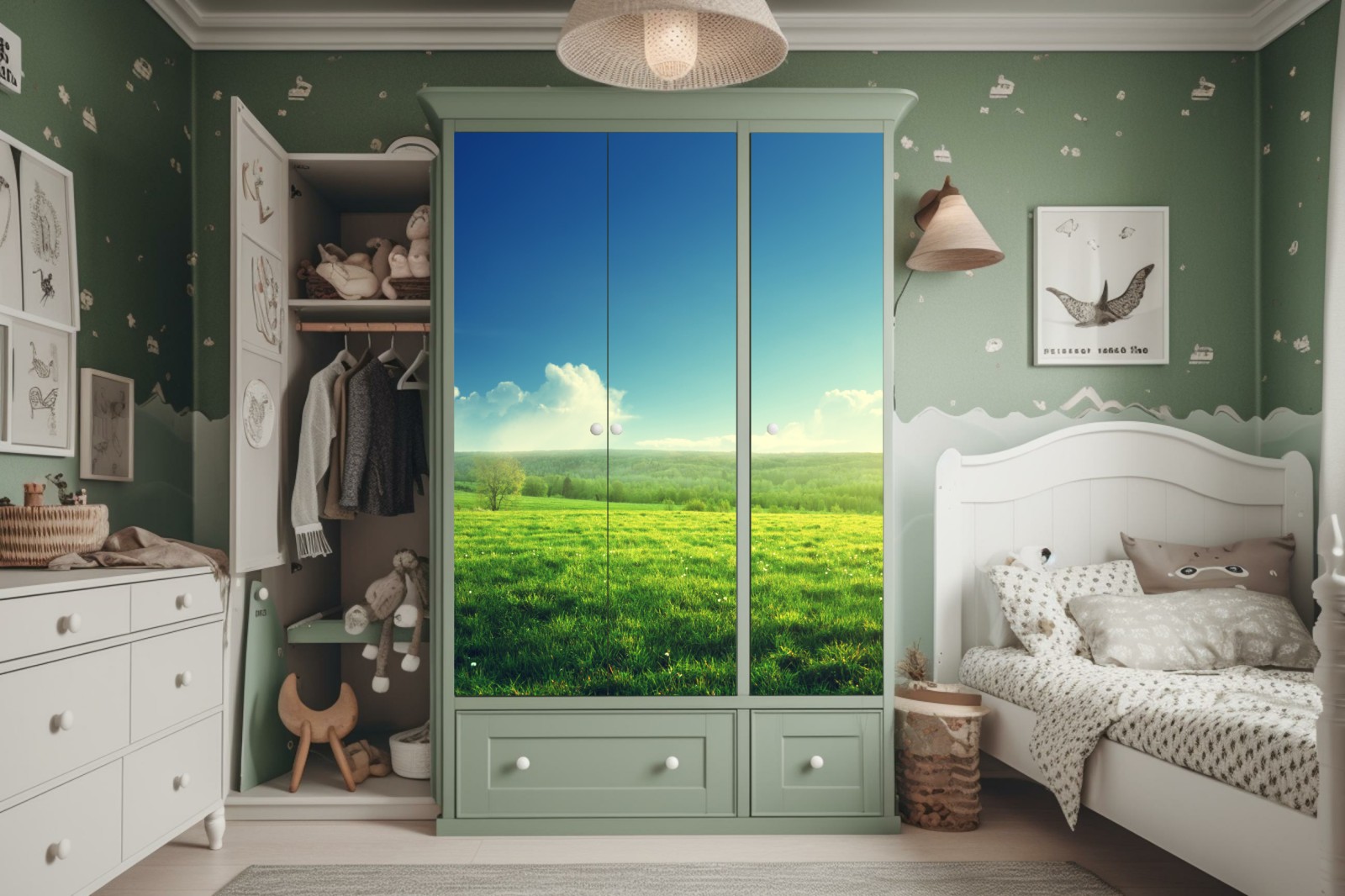 Schrankaufkleber Sonnige frühlingswiese im abendlicht