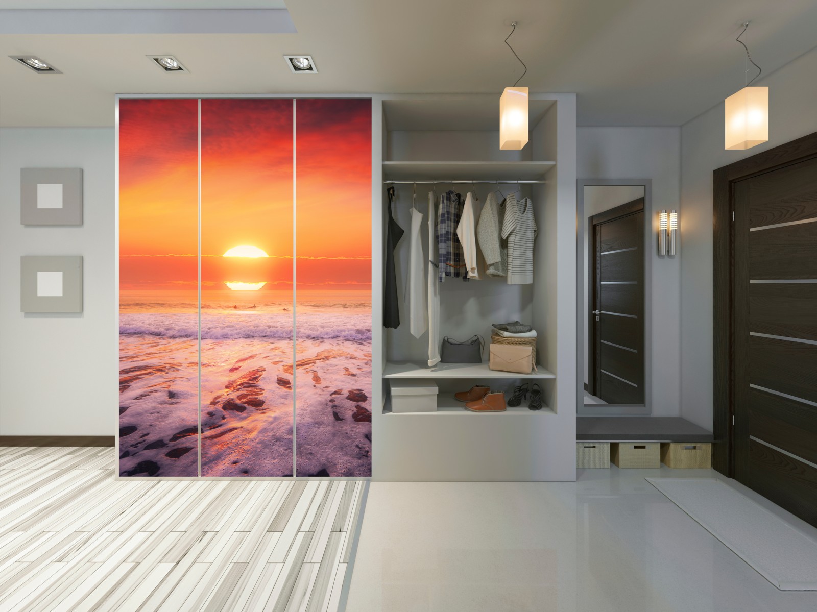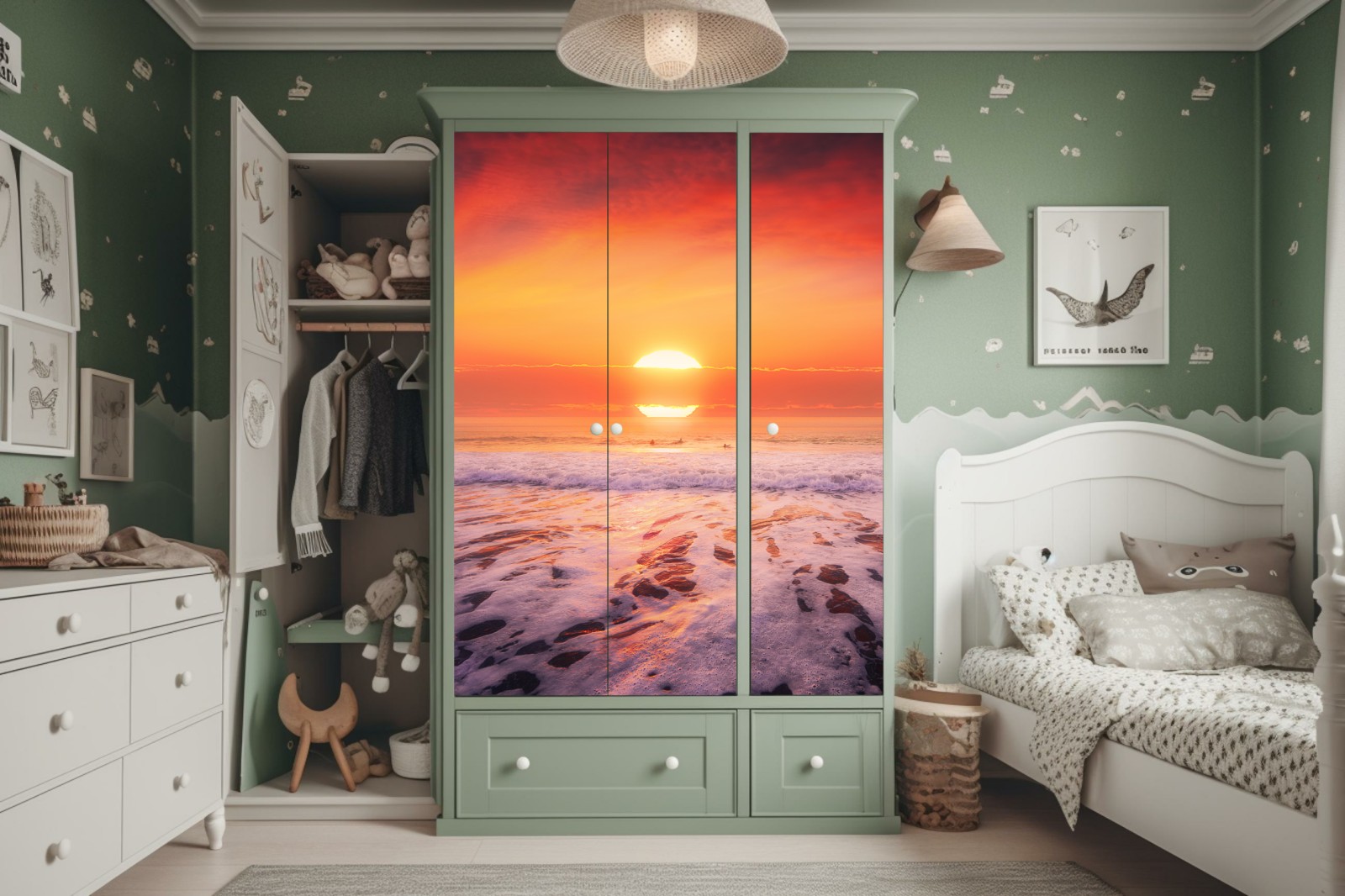 Schrankaufkleber Goldener sonnenuntergang über ruhigem strand