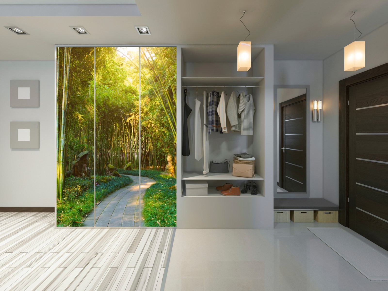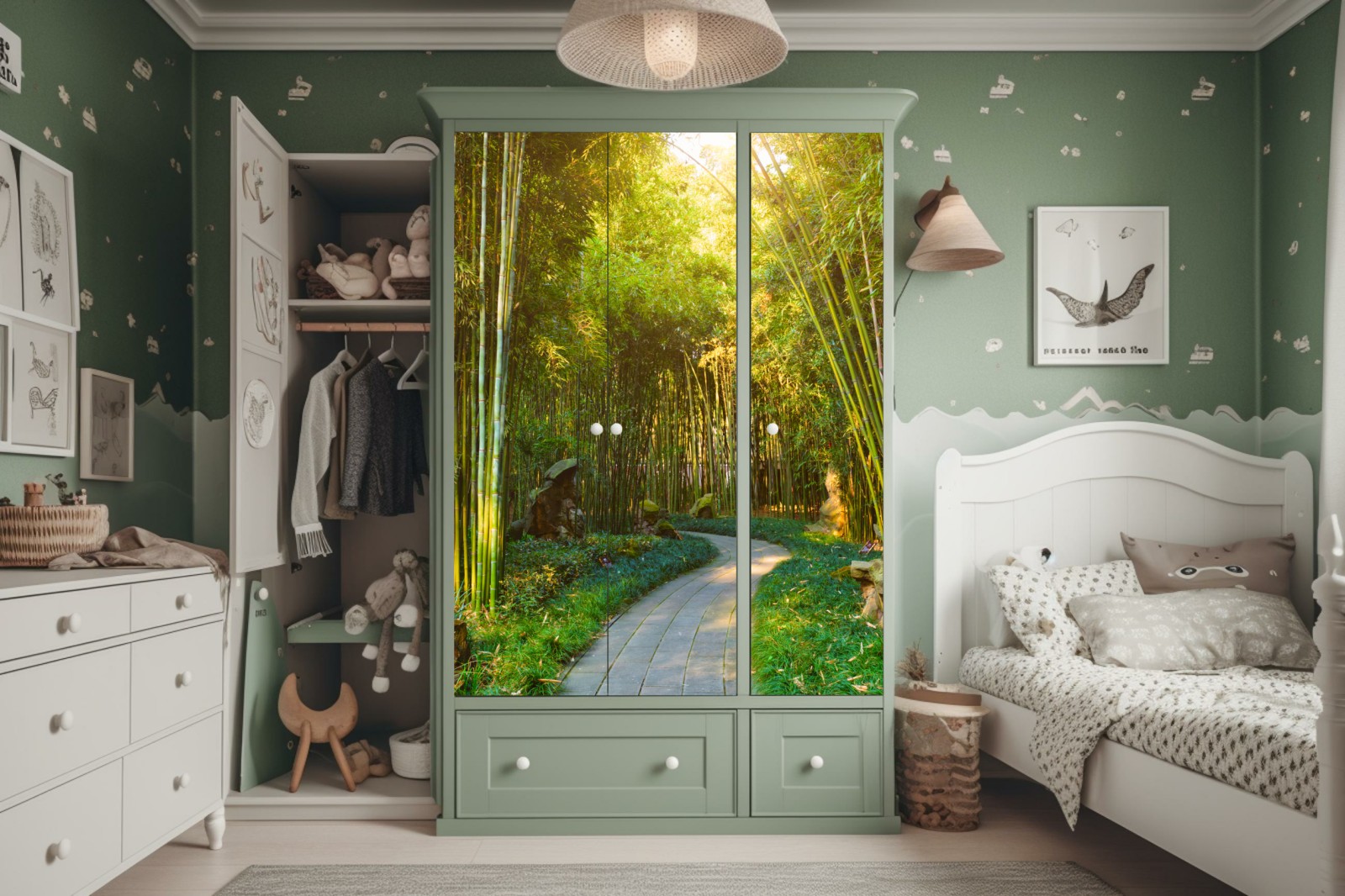 Schrankaufkleber Ruhiger bambuswald mit pfad