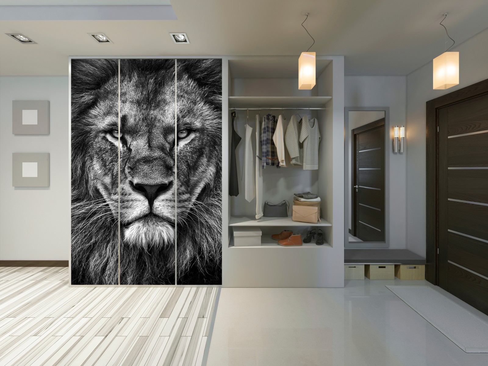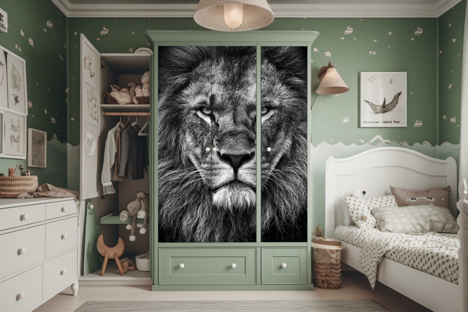 Schrankaufkleber Majestätisches löwenportrait in monochrom