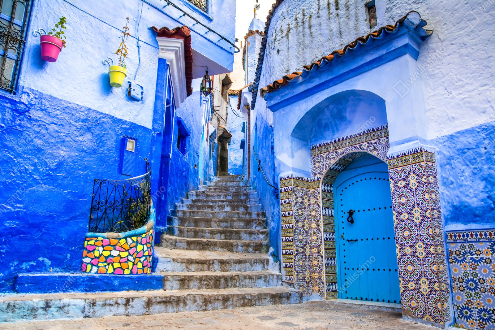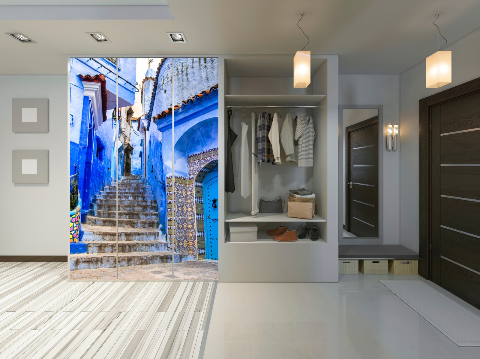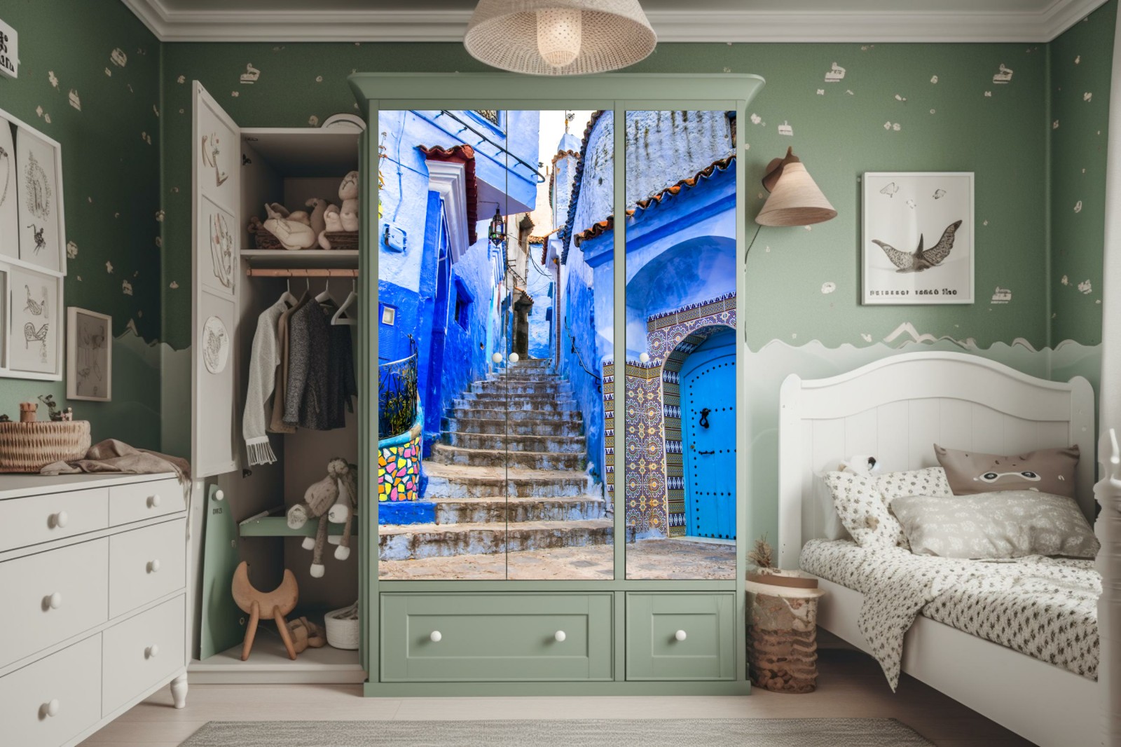 Schrankaufkleber Blaue gasse in Chefchaouen, Marokko