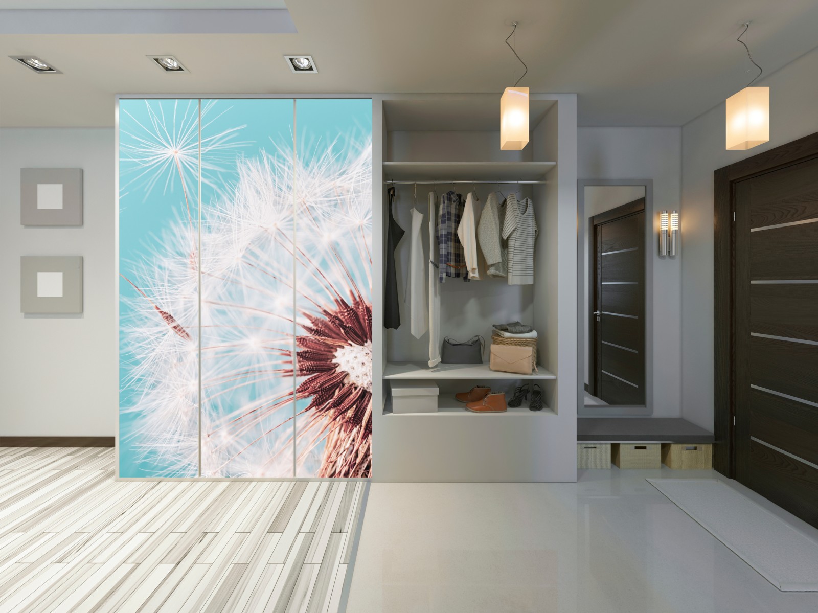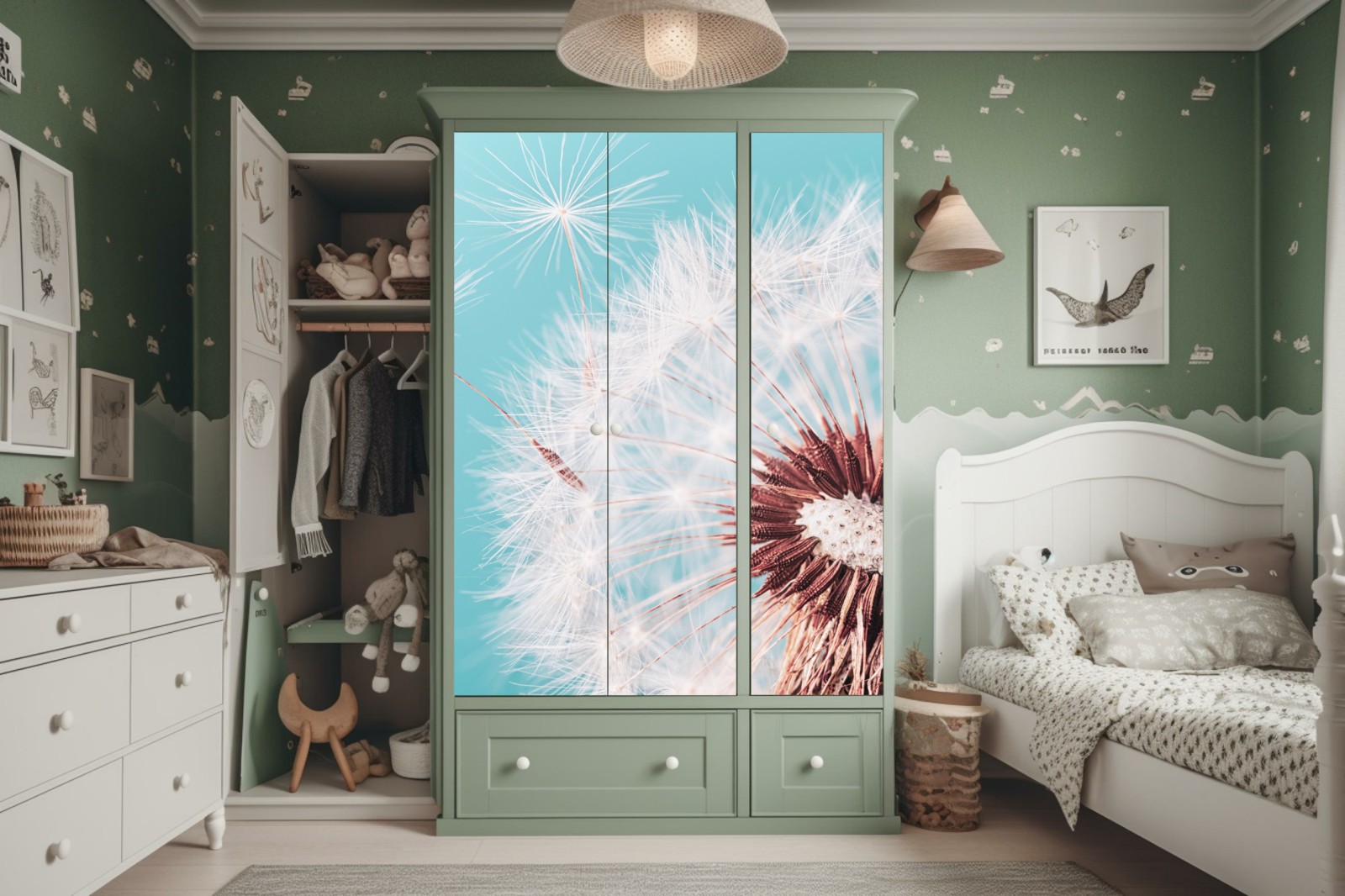 Schrankaufkleber Zarter löwenzahn vor türkisfarbenem hintergrund