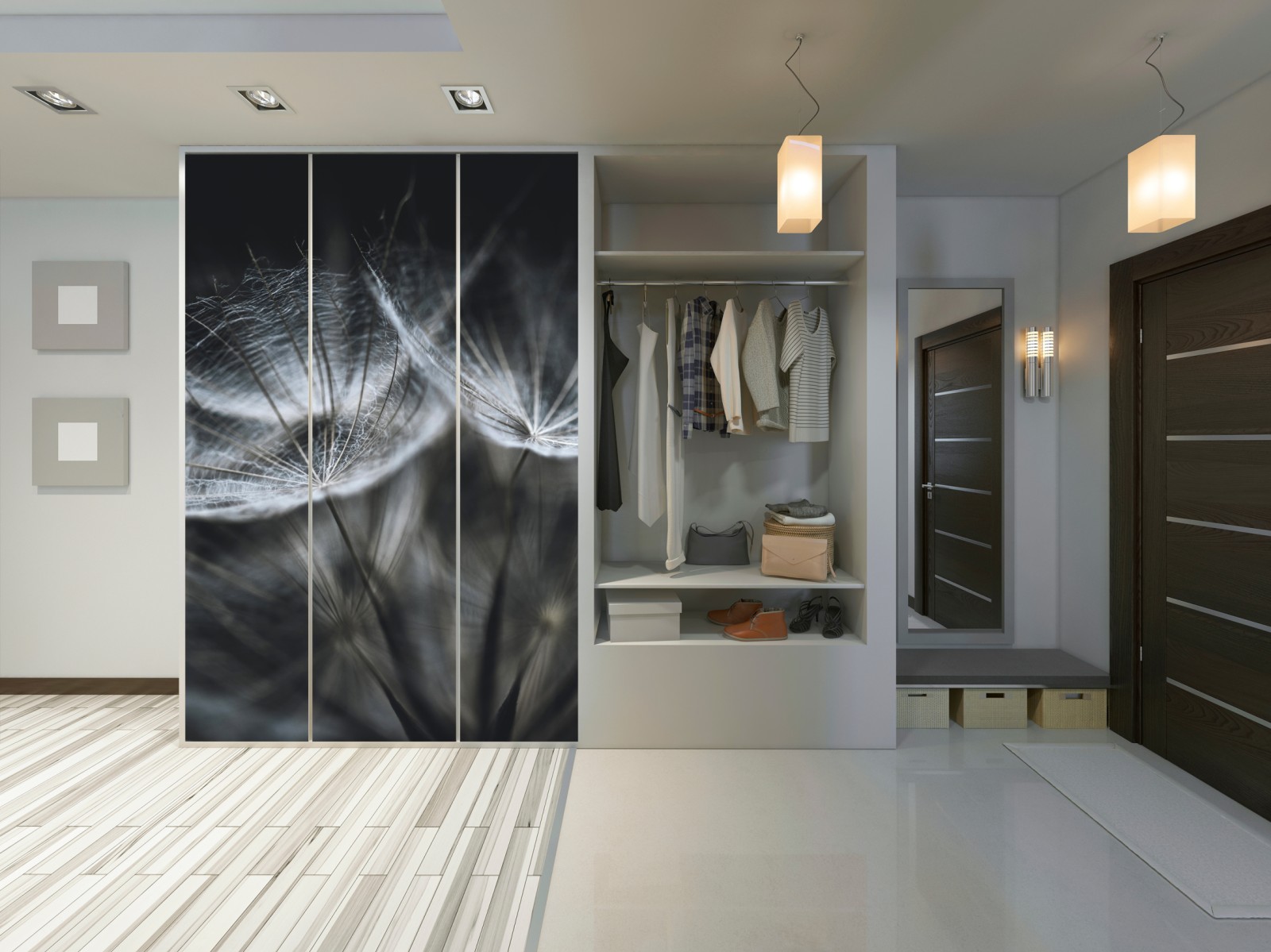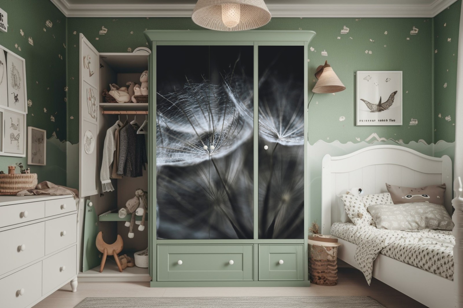 Schrankaufkleber Zarte löwenzahnsamen in monochrom