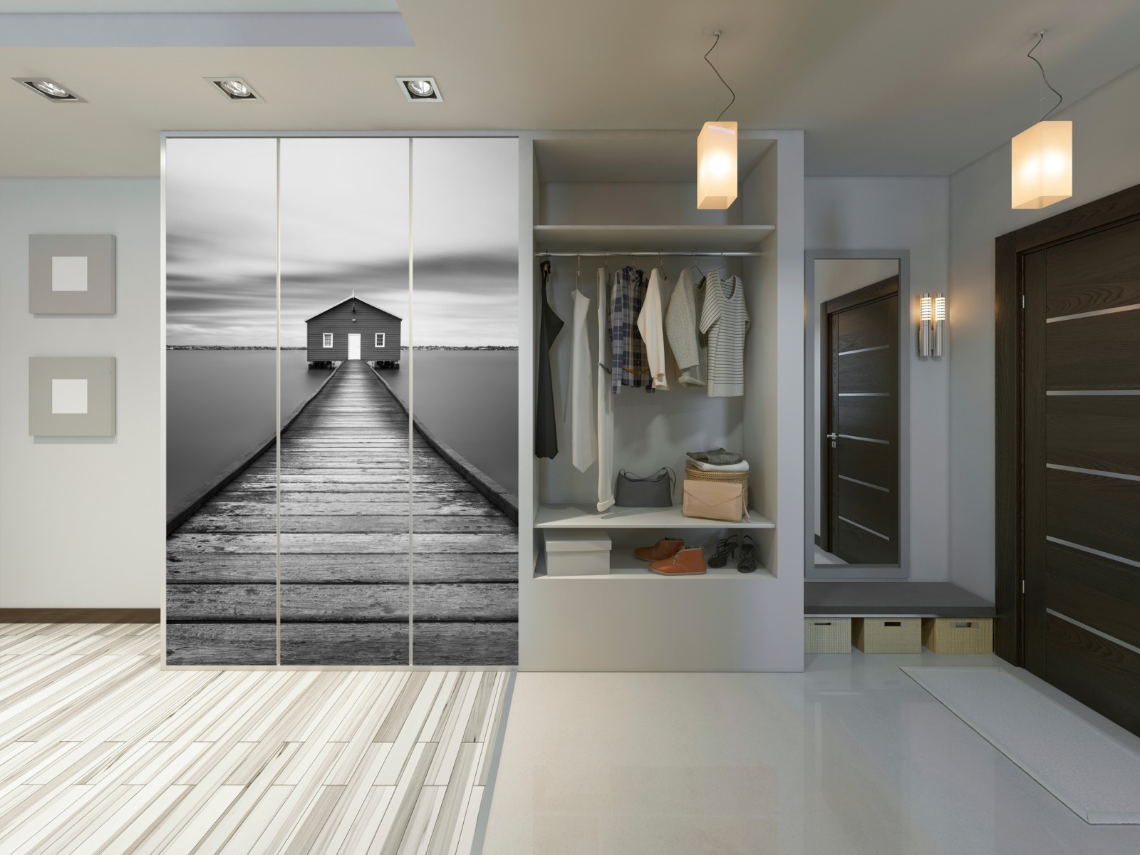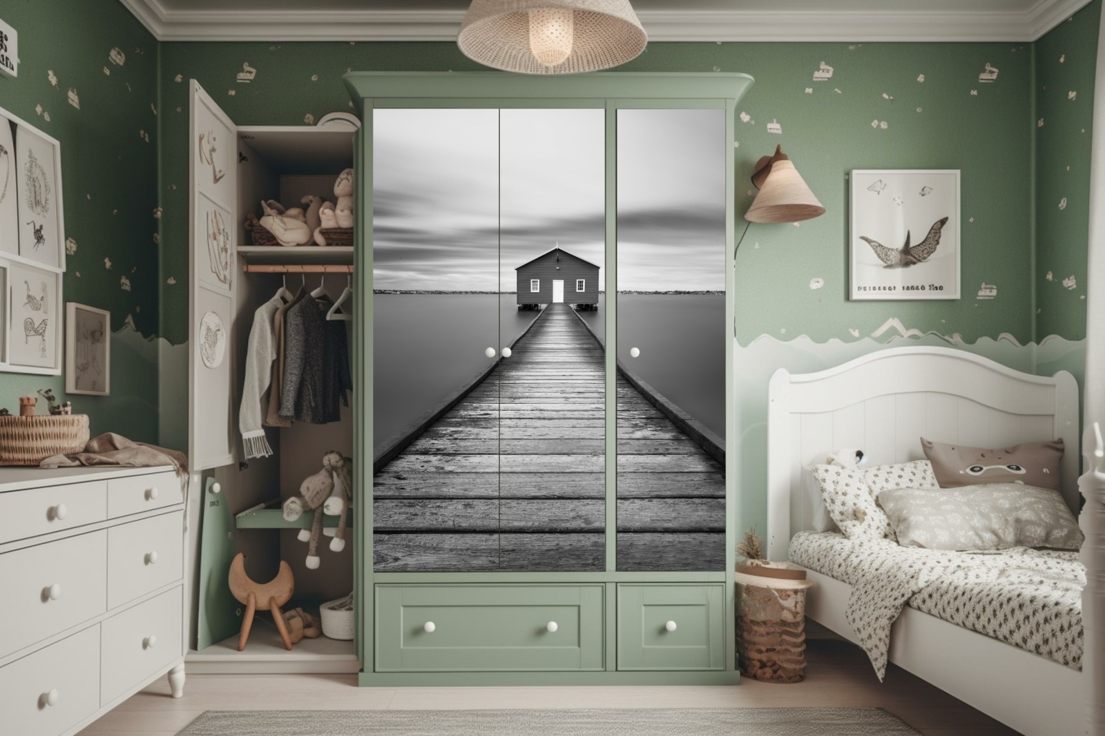 Schrankaufkleber Einsames bootshaus am ruhigen steg