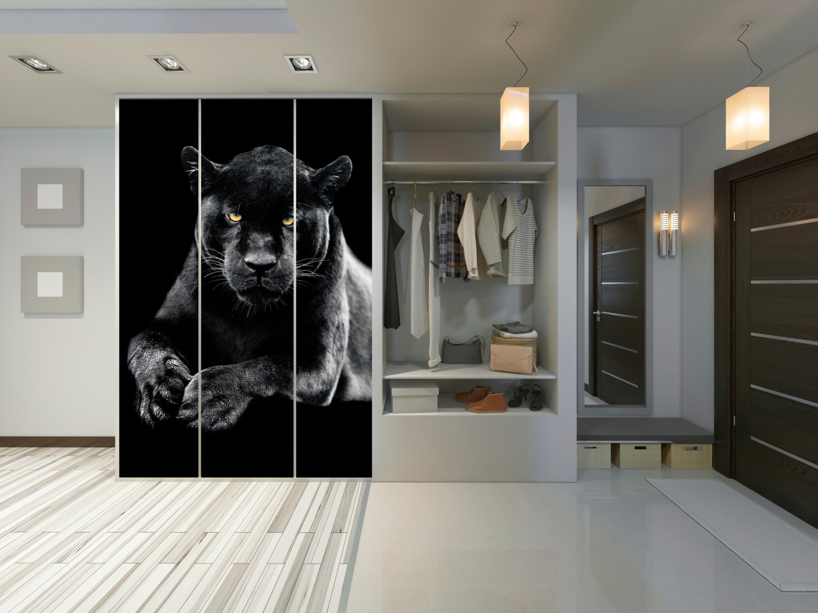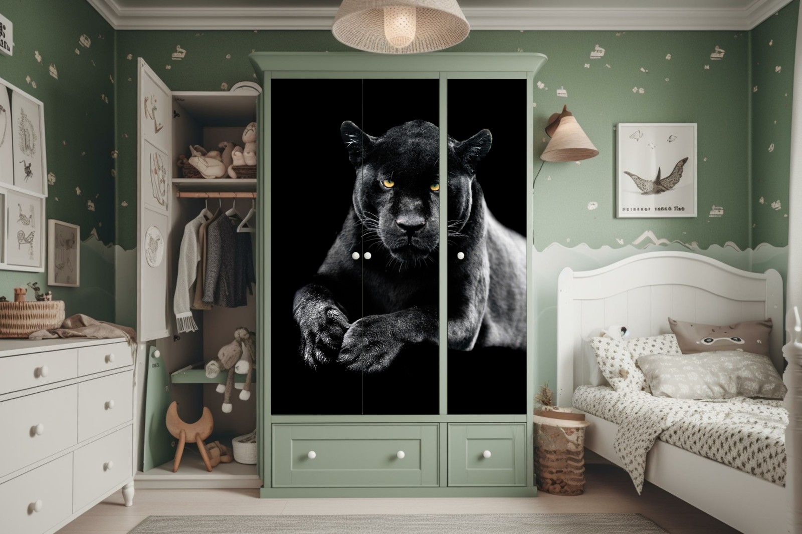 Schrankaufkleber Porträt eines schwarzen panthers vor schwarzem hintergrund