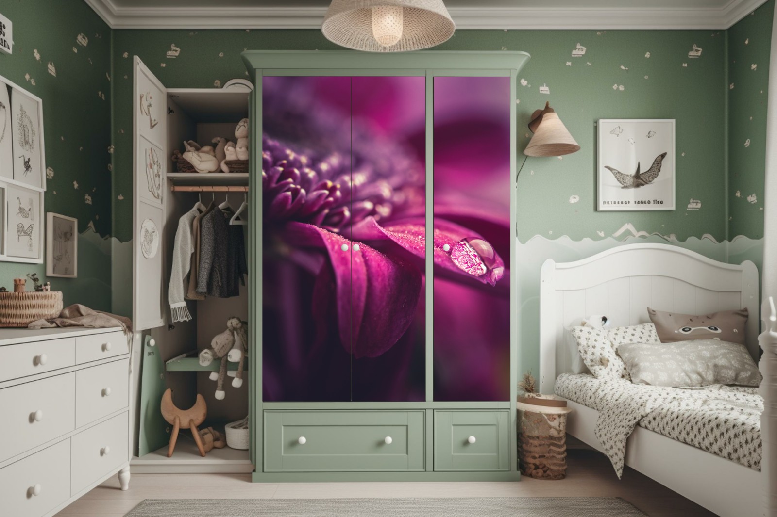 Schrankaufkleber Lila makroblüte mit tautropfen