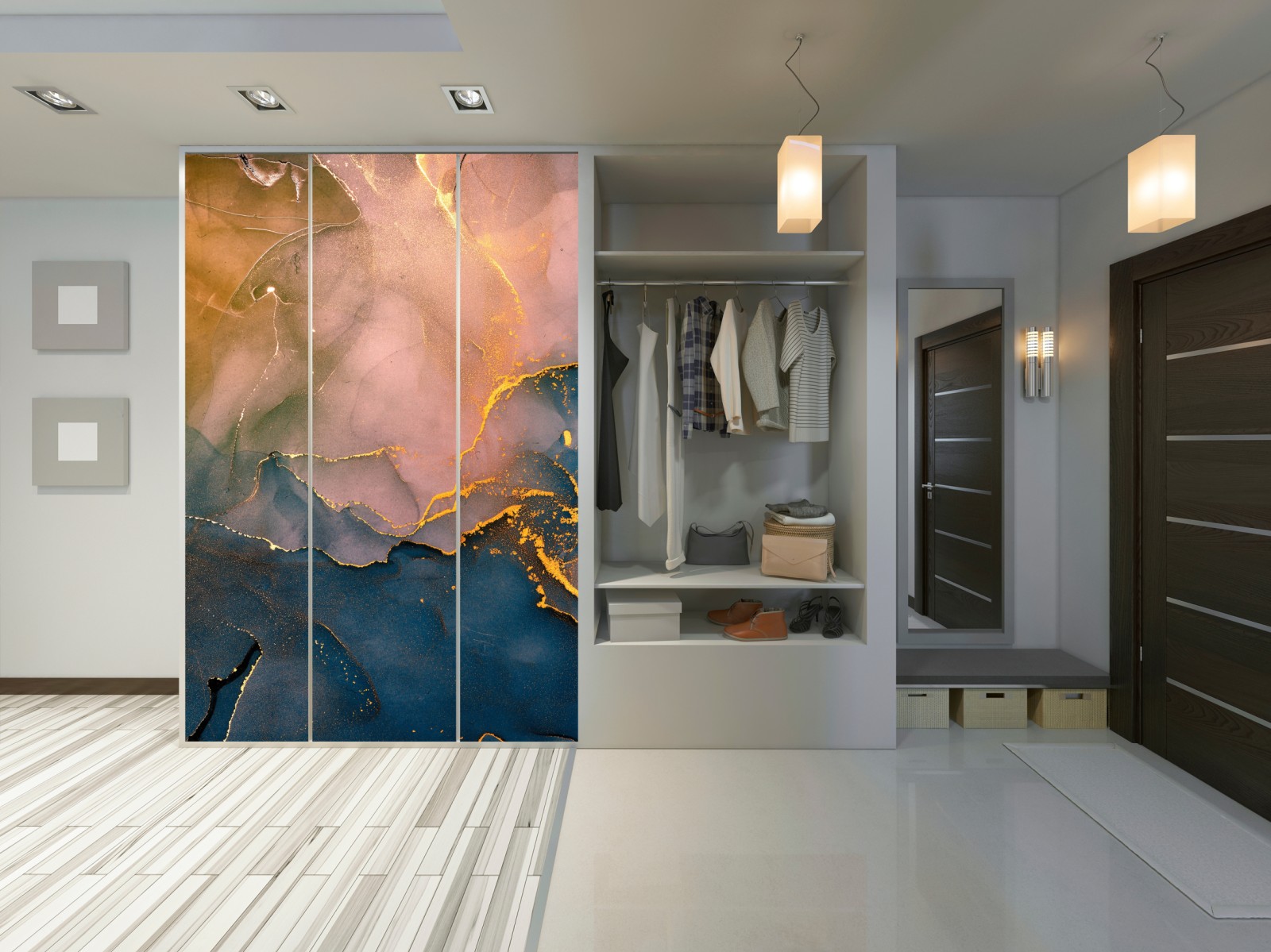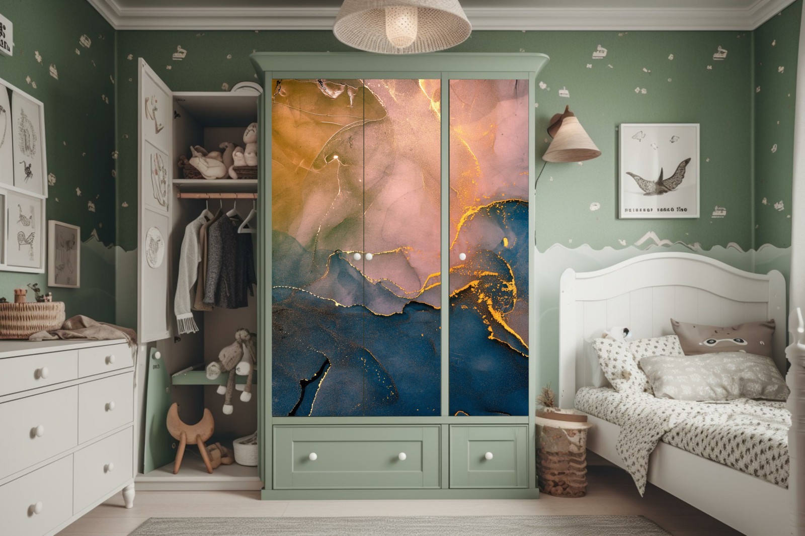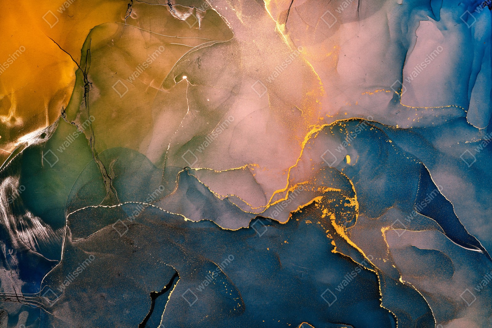Schrankaufkleber Blaues und goldenes abstraktes marmormotiv