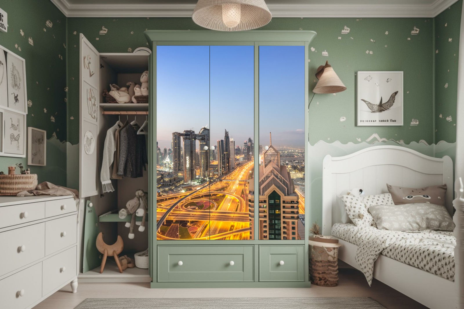 Schrankaufkleber Skyline von Dubai bei dämmerung