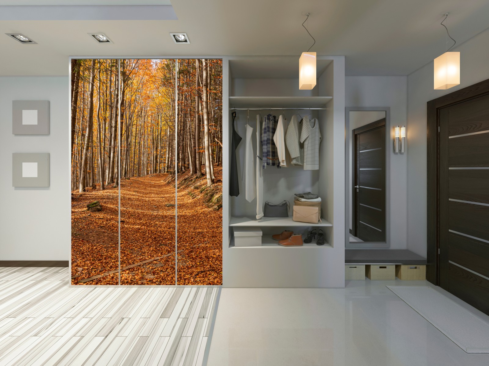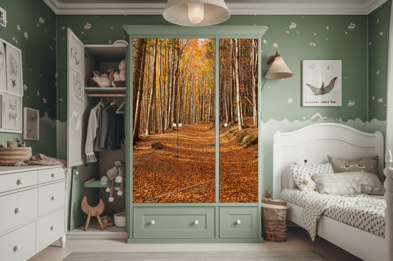 Schrankaufkleber Herbstlicher waldweg mit goldenen blättern
