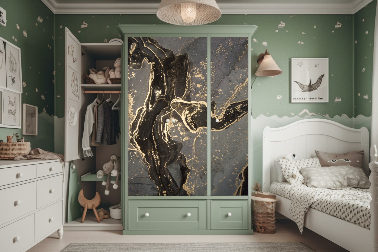 Schrankaufkleber Luxuriöser schwarz-goldener marmor abstrakt