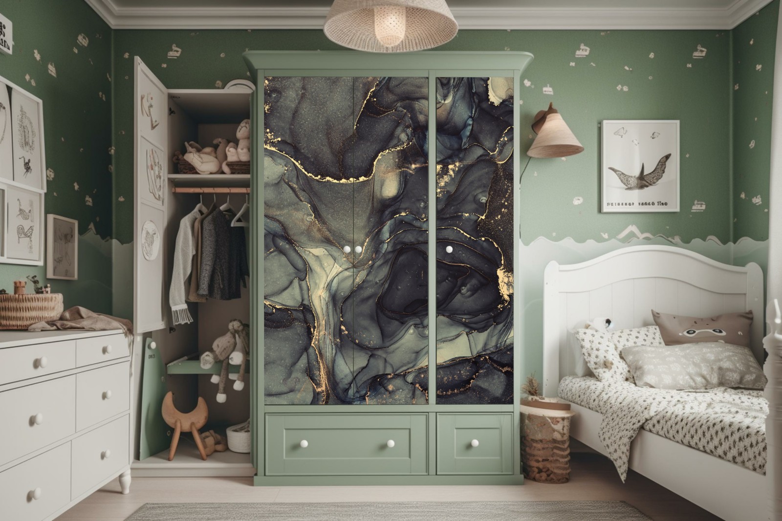 Schrankaufkleber Luxuriöse abstrakte alkoholtinten-kunst mit goldenen adern