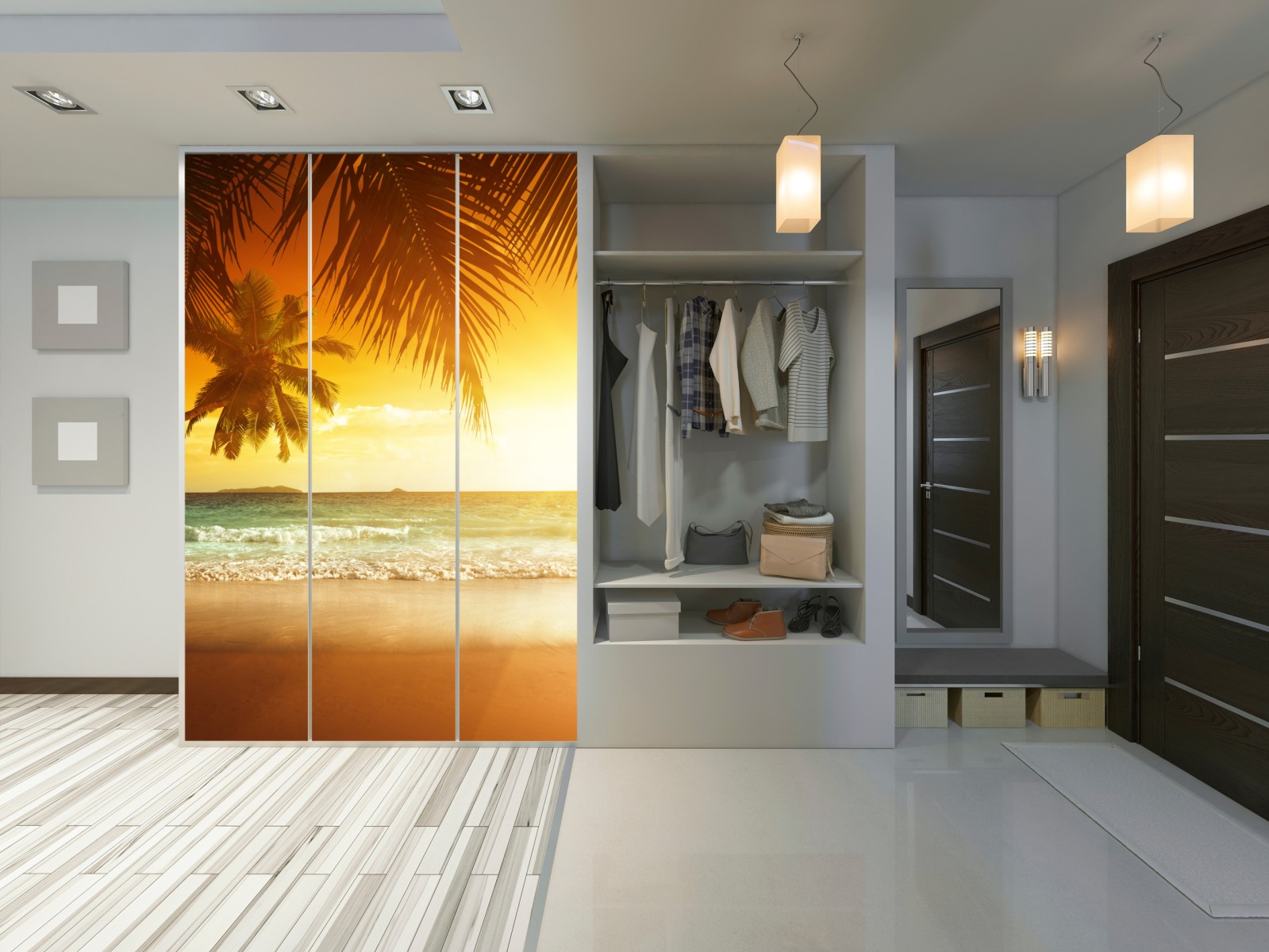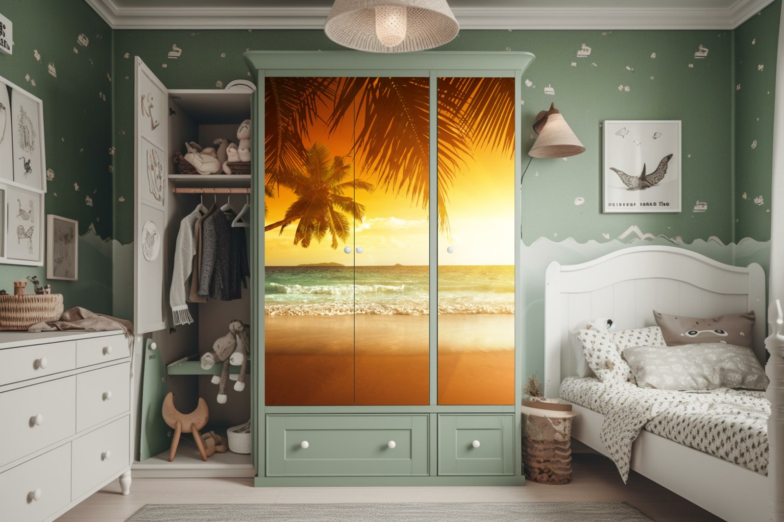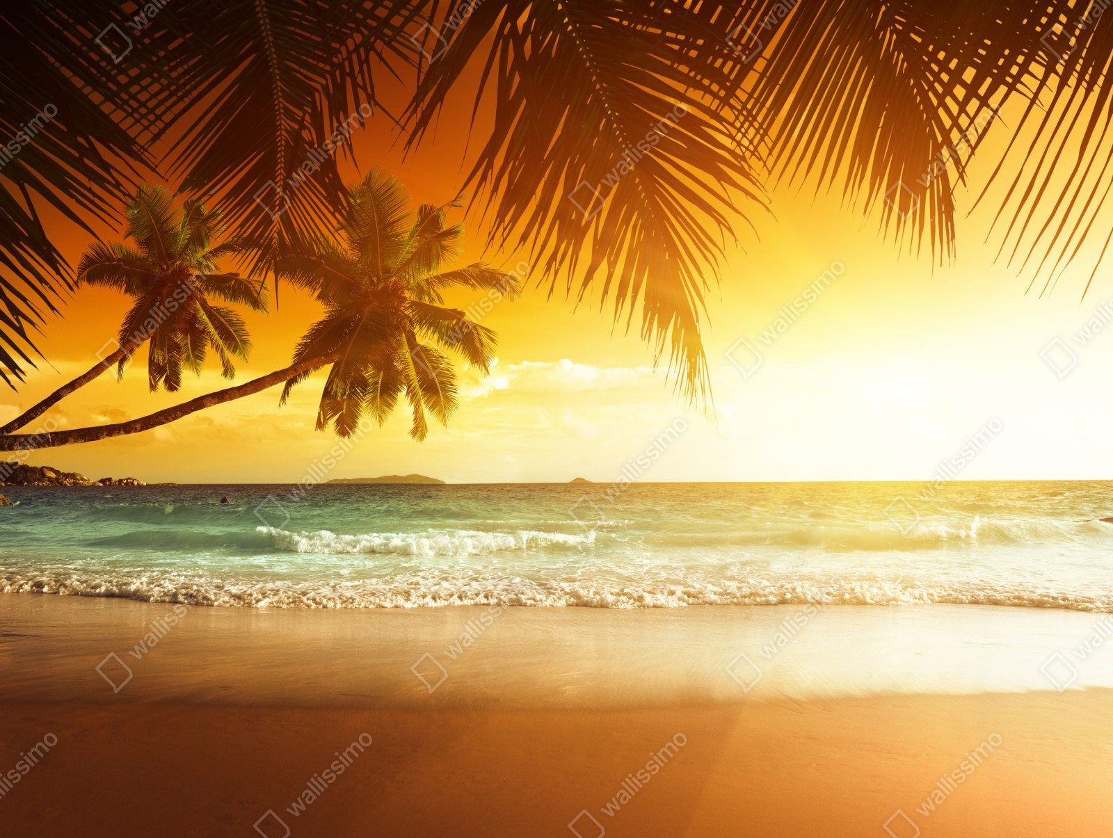 Schrankaufkleber Goldener sonnenuntergang an einem strand in der Karibik
