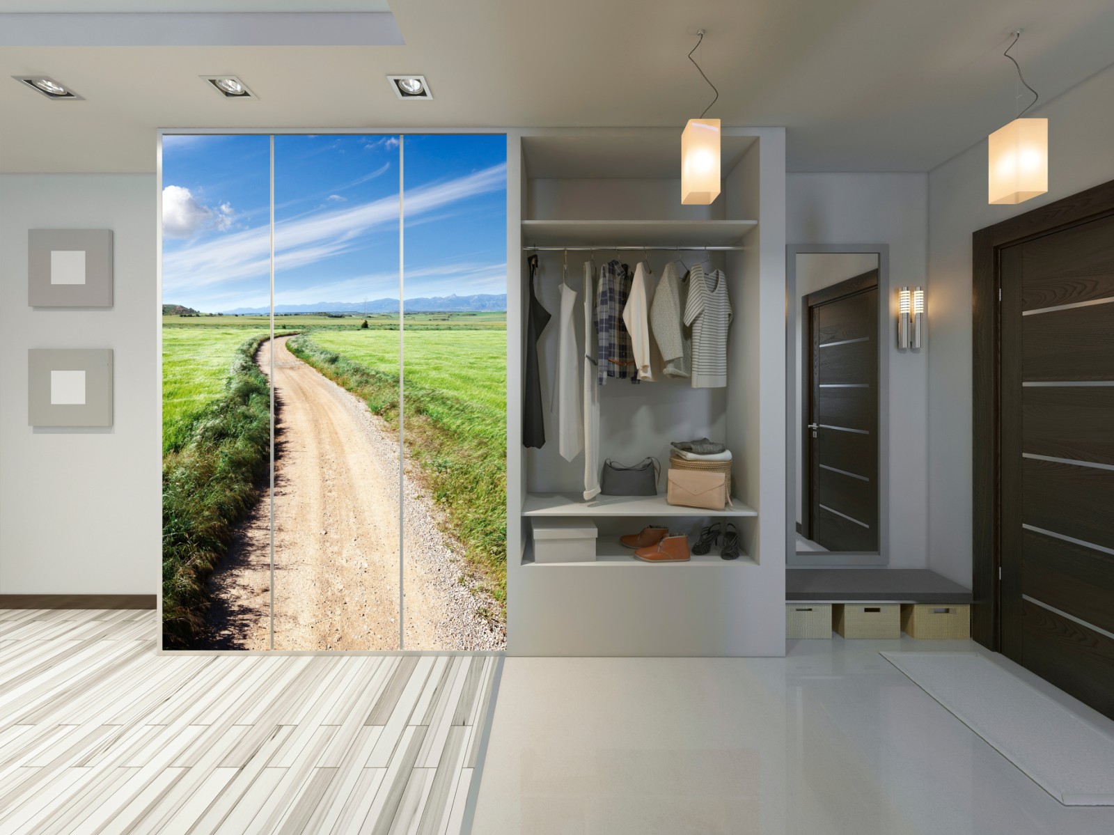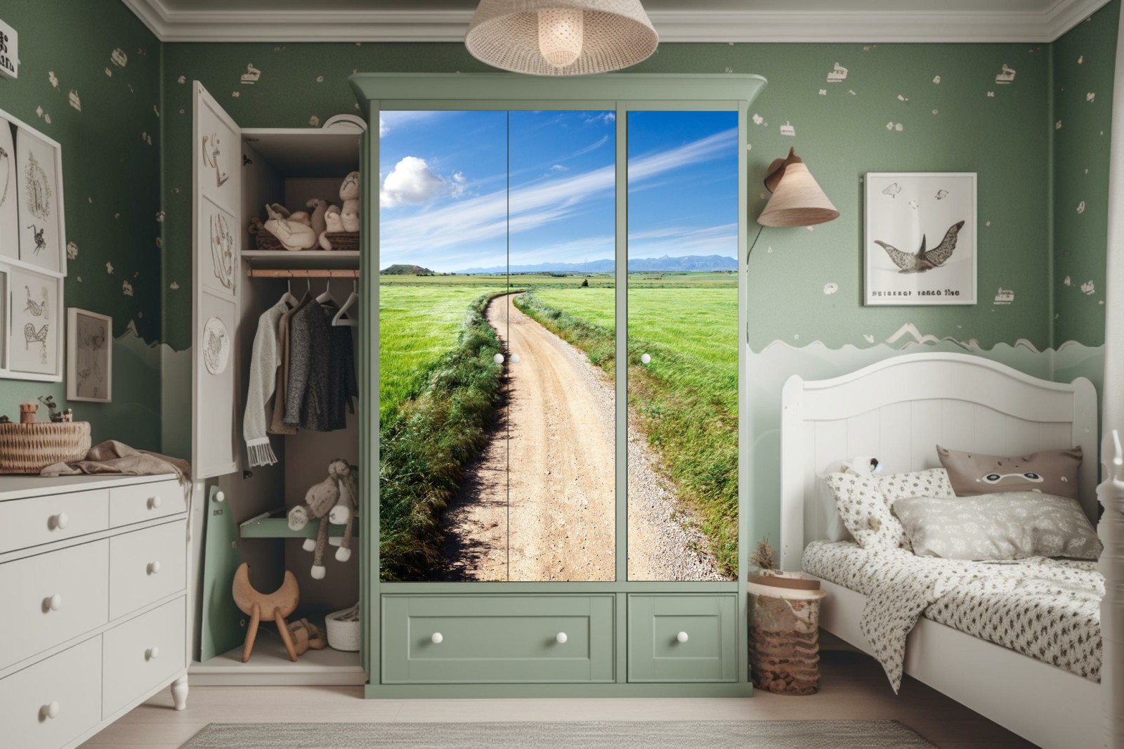 Schrankaufkleber Gewundener landweg durch grüne wiesen