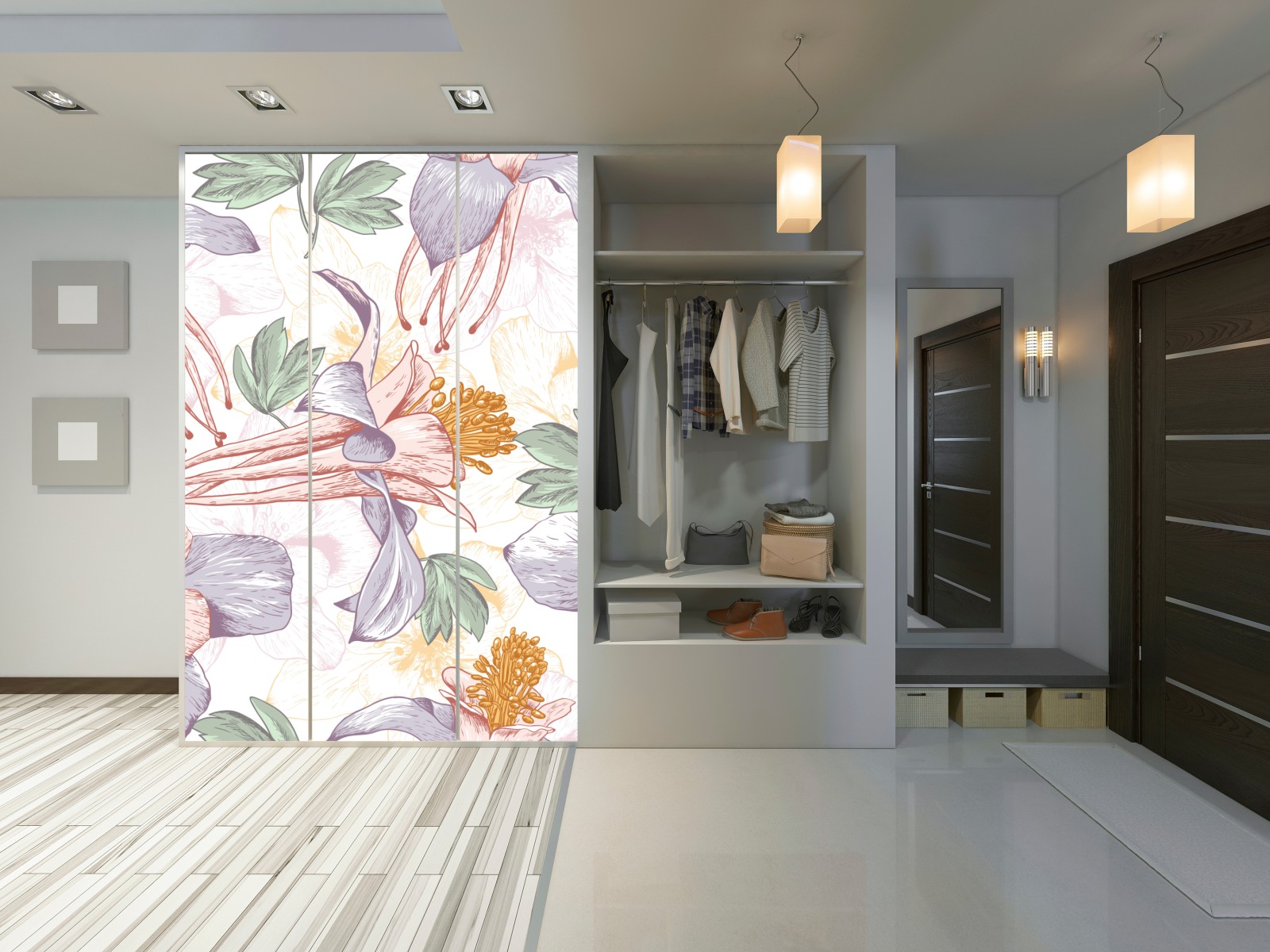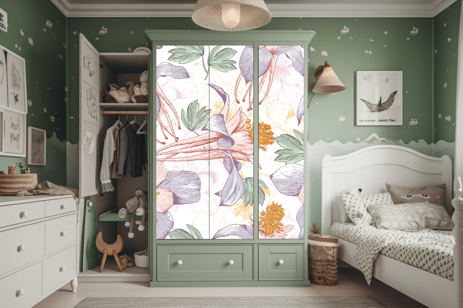 Schrankaufkleber Zarte pastellblumen im botanischen stil