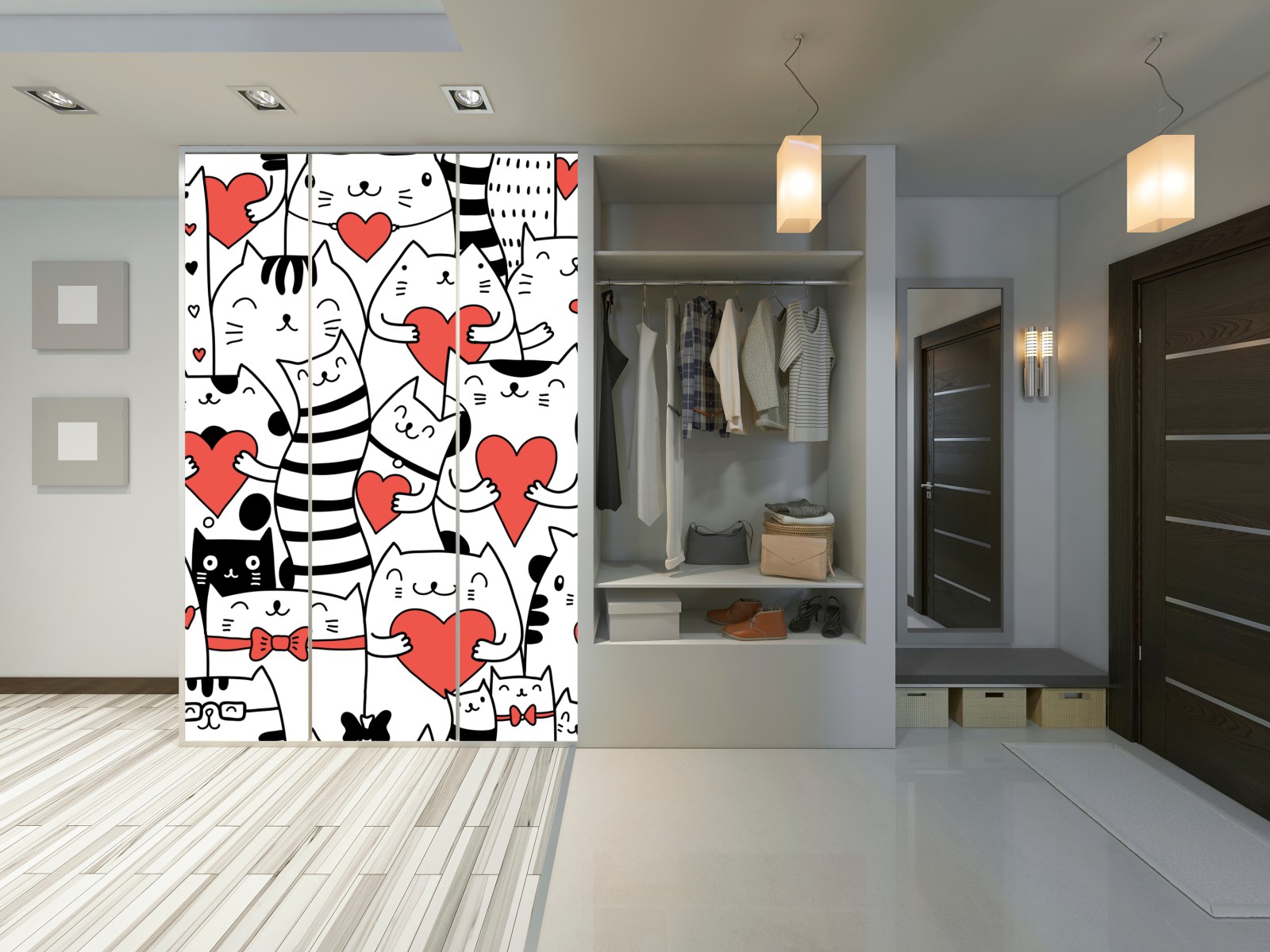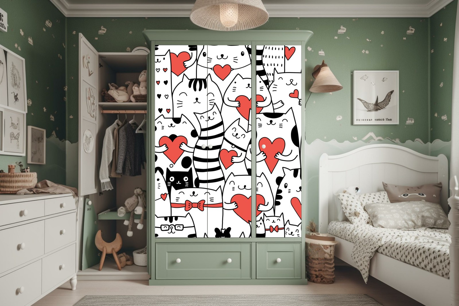 Schrankaufkleber Süße katzen mit herzen muster