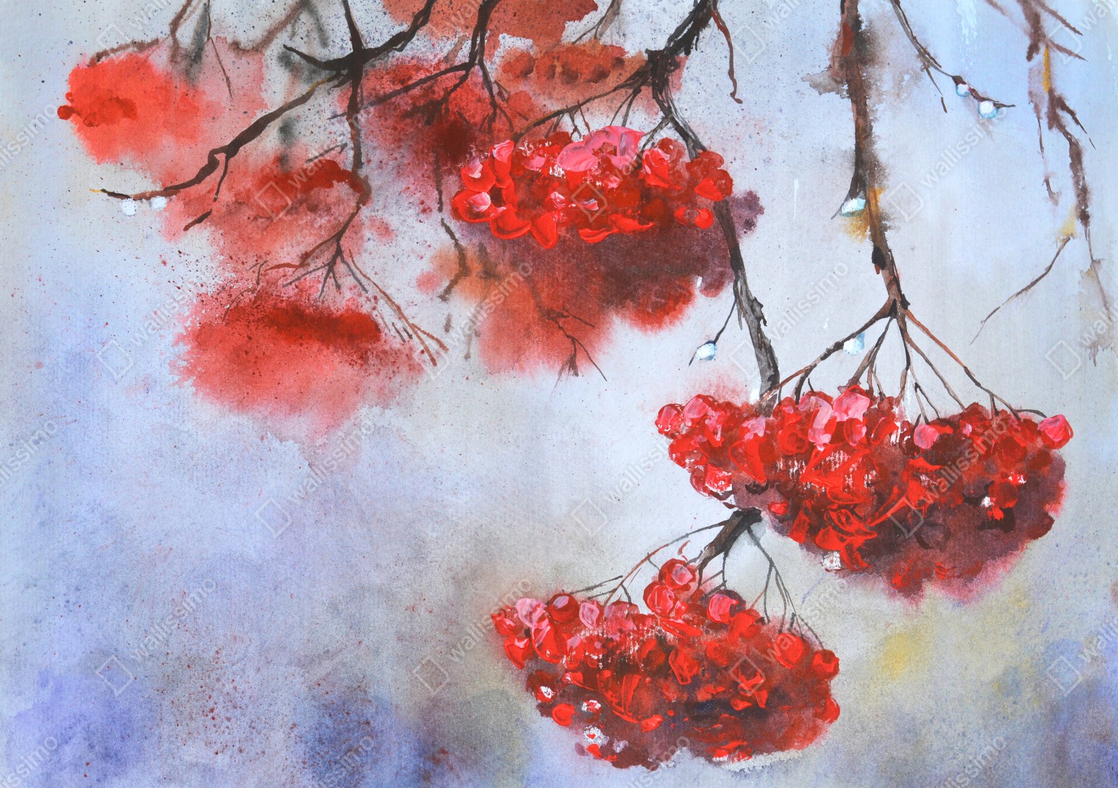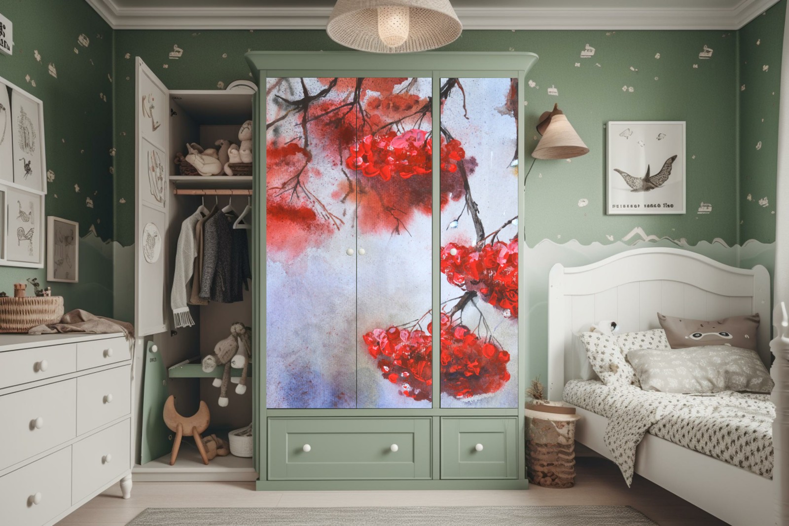 Schrankaufkleber Aquarell rote beeren an zweigen