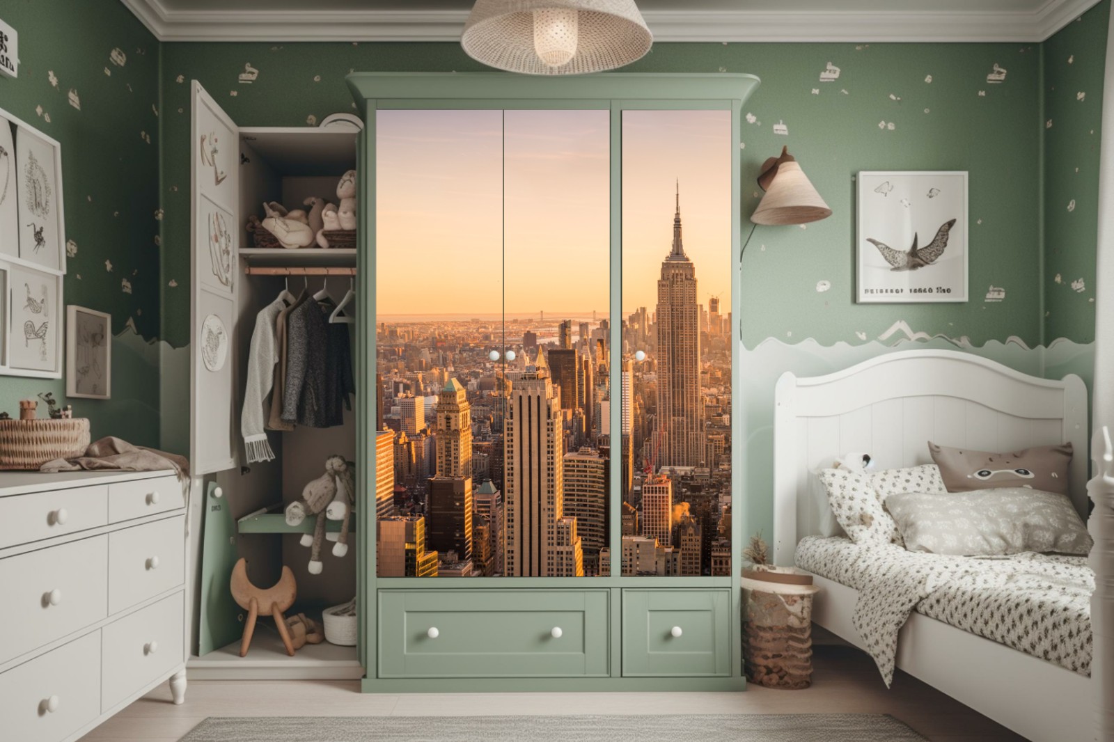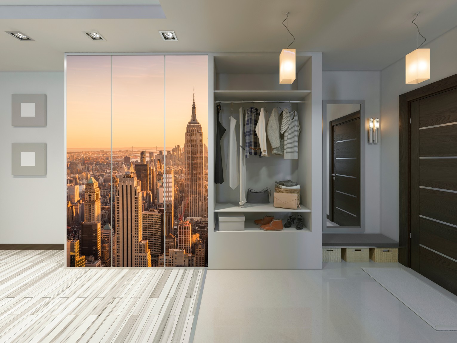 Schrankaufkleber Goldener sonnenuntergang über der skyline von New York